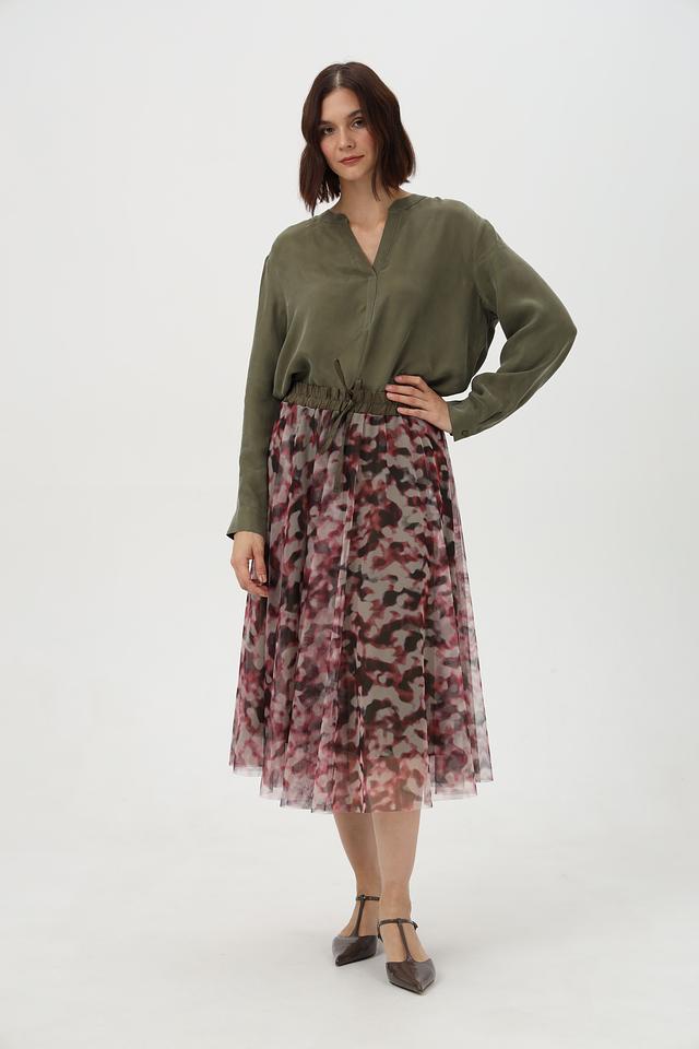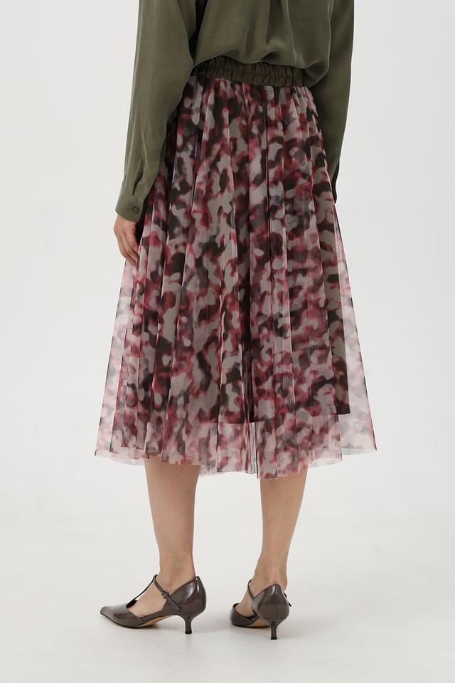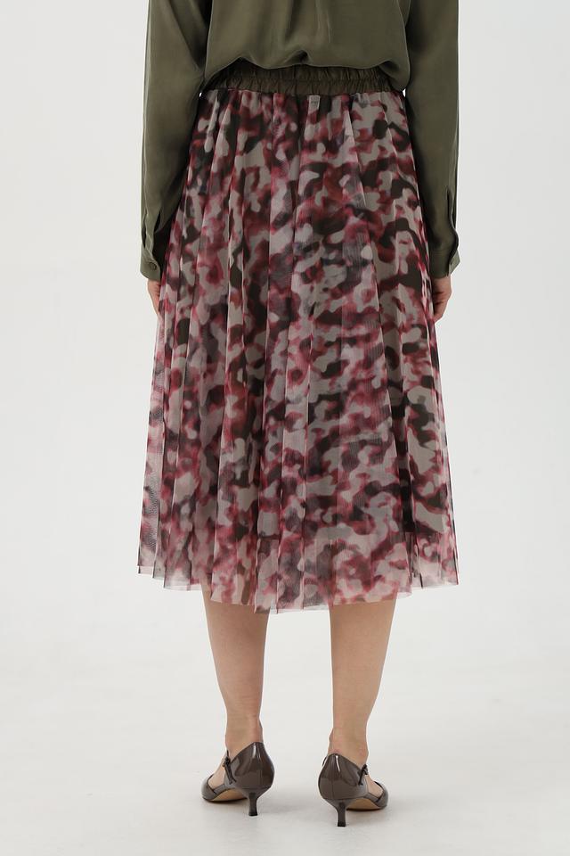 Юбка имеет длину миди, что делает ее универсальной для создания как повседневных, так и вечерних образов. Оригинальный принт добавляет изделию изюминку и позволяет выделиться из толпы.