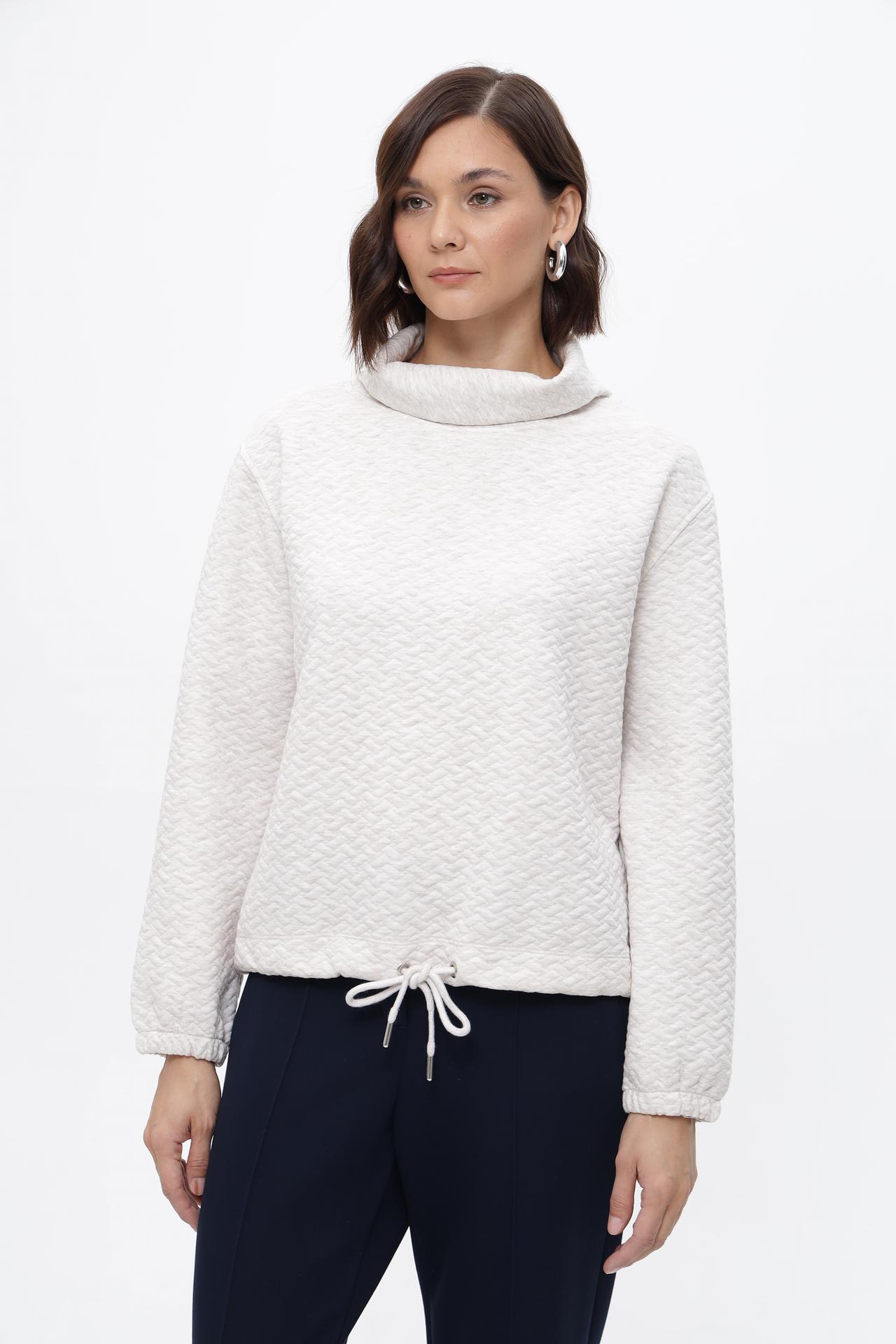 Ультрамодный пуловер от MORE and MORE станет стильным дополнением вашего повседневного гардероба. Модель выполнена из качественной ткани с приятной фактурой, обеспечивая комфорт в течение всего дня. Оригинальный дизайн с высоким воротником-гольф и регулируемой кулиской по низу изделия позволяет создавать разнообразные образы.
