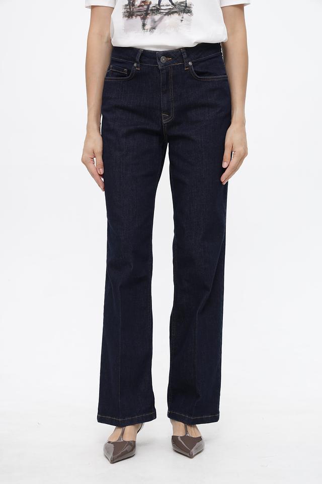 Джинсы с высокой посадкой визуально удлиняют ноги и создают стройный силуэт. Пять карманов – два передних, два задних и один небольшой карман для мелочи – обеспечивают функциональность и удобство. Шлевки для ремня позволяют подчеркнуть талию.