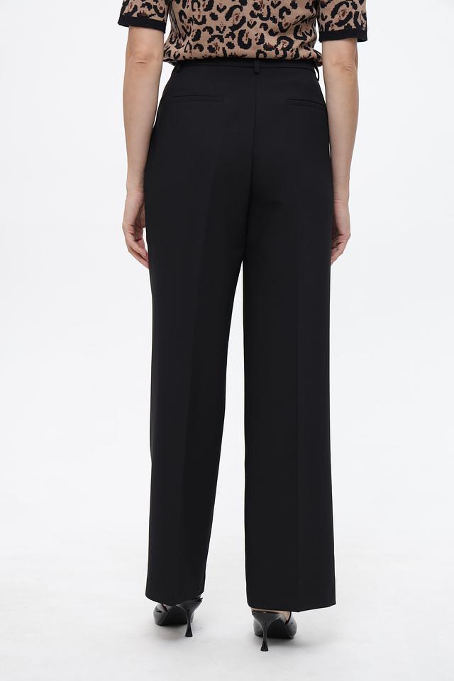 Брюки имеют прямой крой и среднюю посадку, что обеспечивает комфортную посадку по фигуре. Ткань, в составе которой переработанный полиэстер, вискоза и эластан, приятна на ощупь и хорошо держит форму.