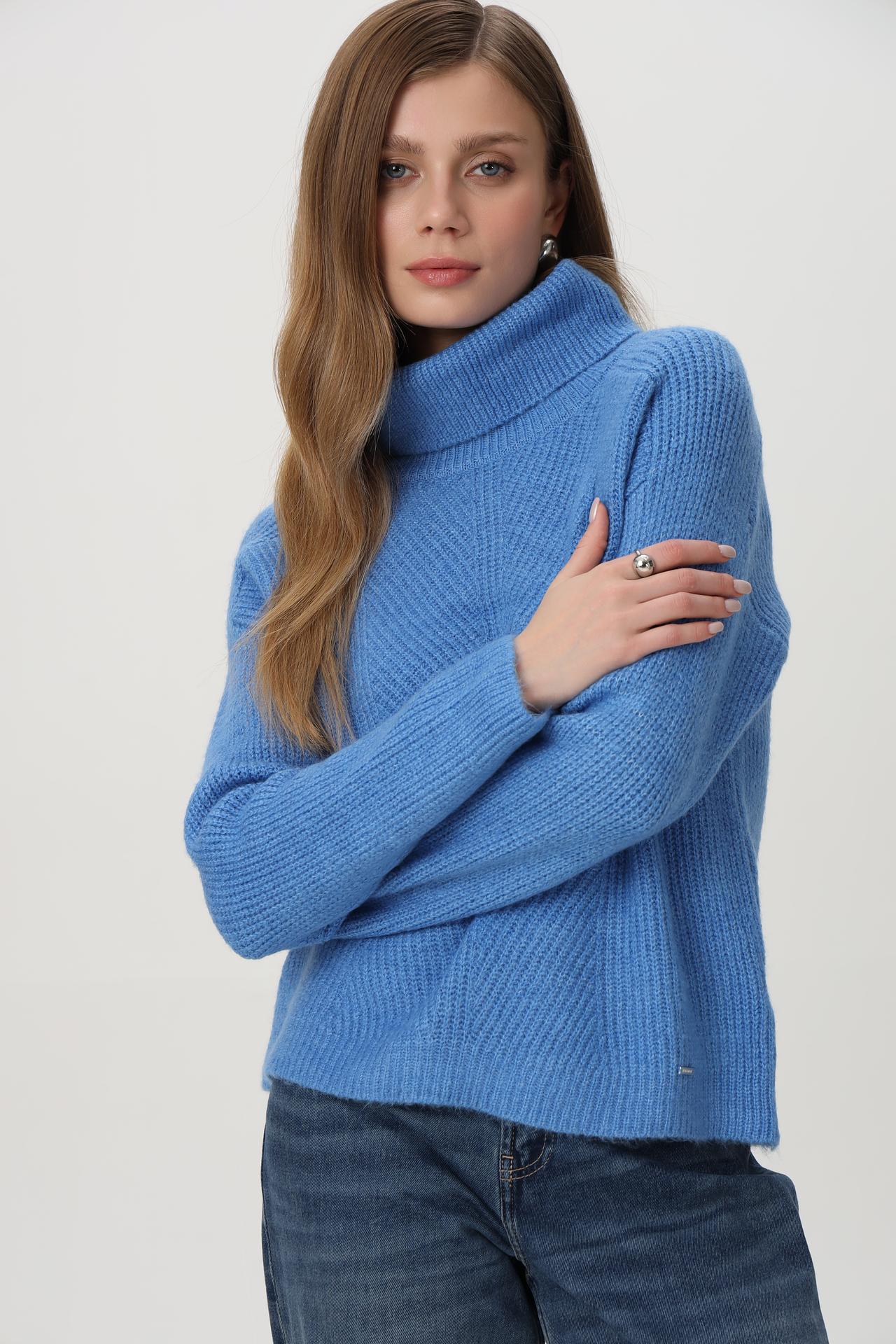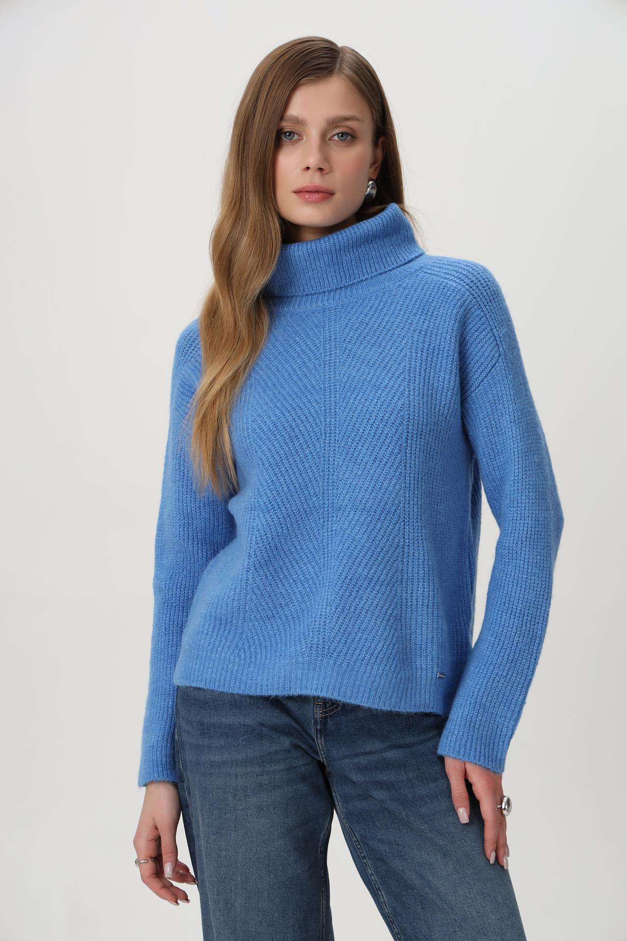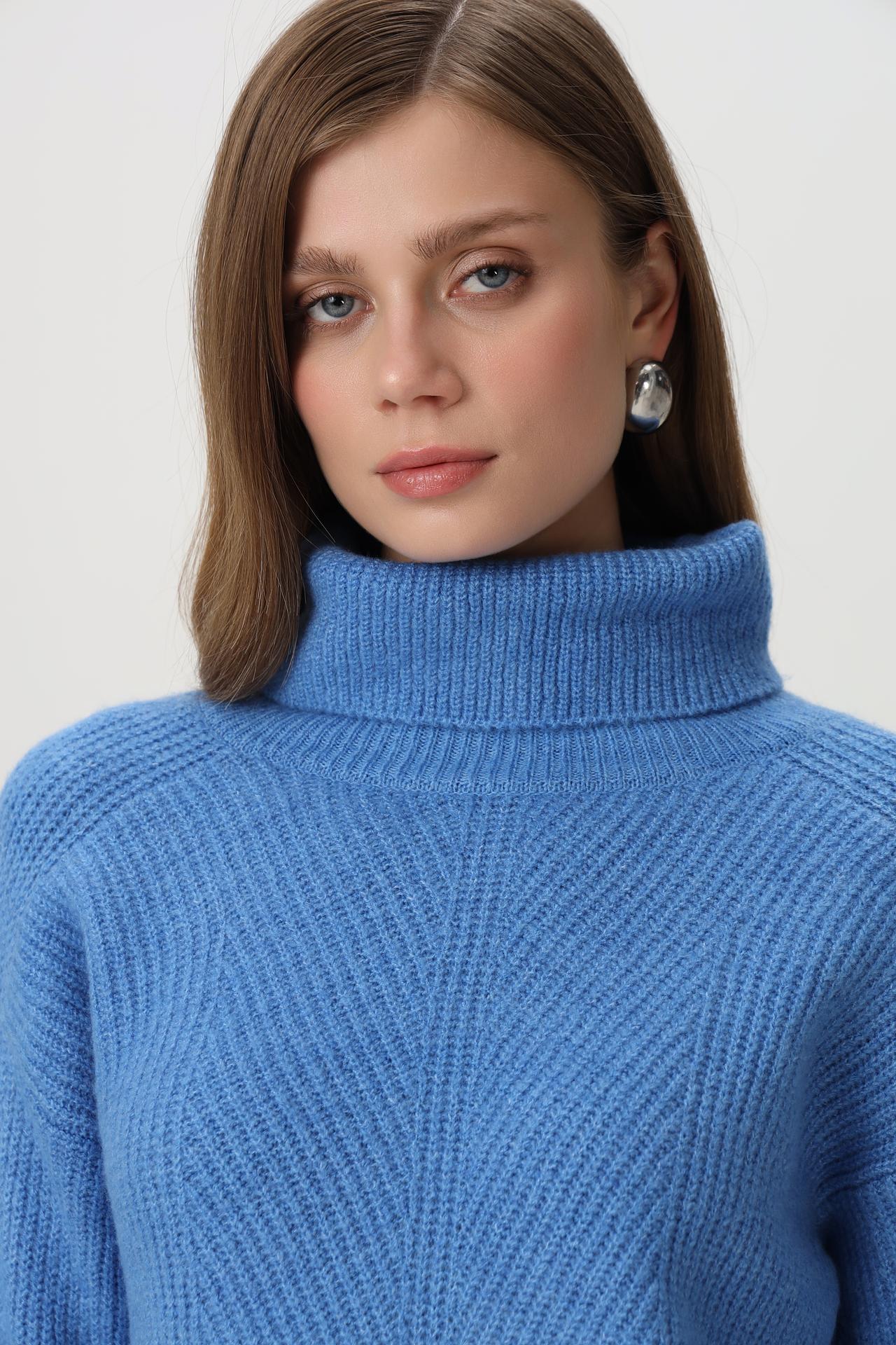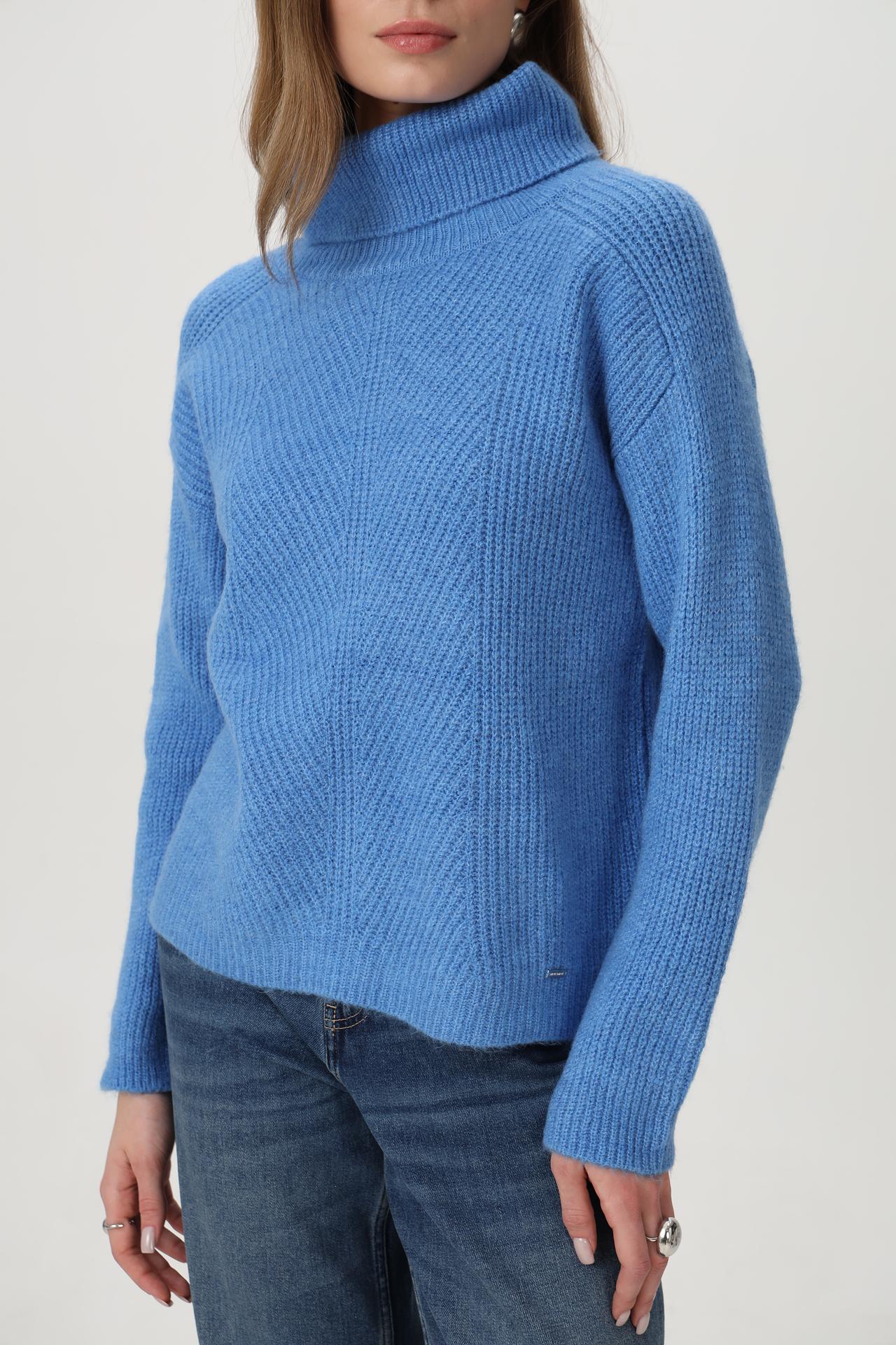 Классический крой с высоким воротником-гольф и оригинальный узор вязки делают этот пуловер универсальным элементом гардероба. - Универсальность