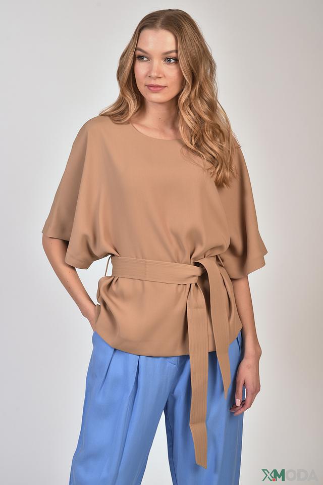 Модель имеет свободный крой, который не сковывает движений, и короткие рукава, идеально подходящие для теплой погоды. Округлый вырез горловины придает блузе элегантный вид. Блуза комплектуется поясом в тон, который позволяет подчеркнуть талию и создать более женственный силуэт.