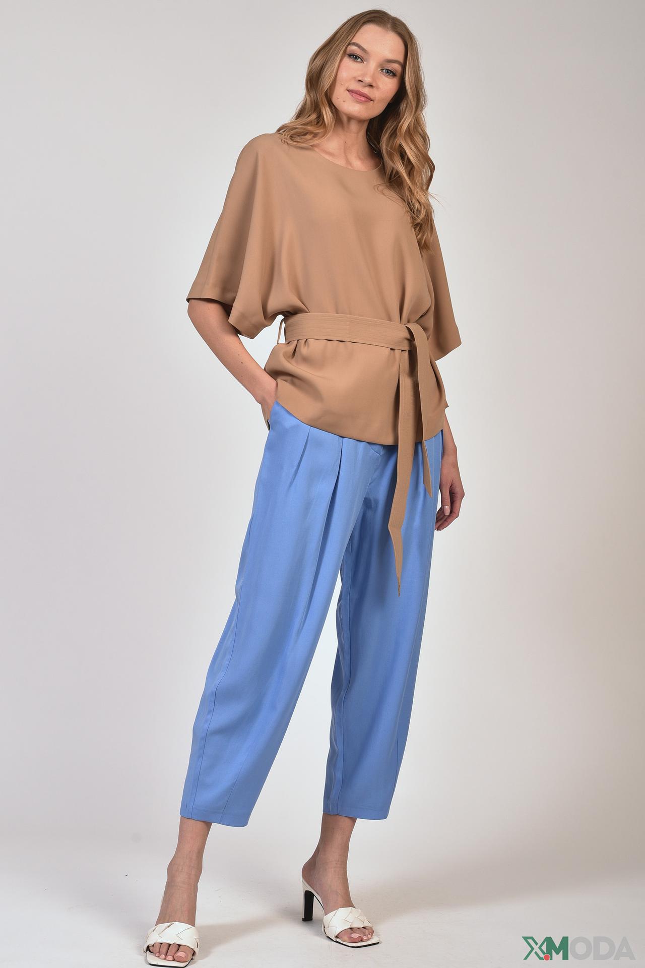 Эта блуза прекрасно сочетается с различными стилями одежды, позволяя вам создавать уникальные и запоминающиеся образы. Акцентный пояс подчеркивает талию, добавляя образу женственности и изящества.