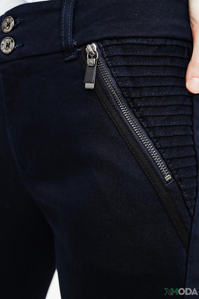 Джинсы имеют прямой крой, который подчеркивает фигуру, не сковывая движения. Оригинальным акцентом являются декоративные молнии на карманах, добавляющие образу дерзости и современности.