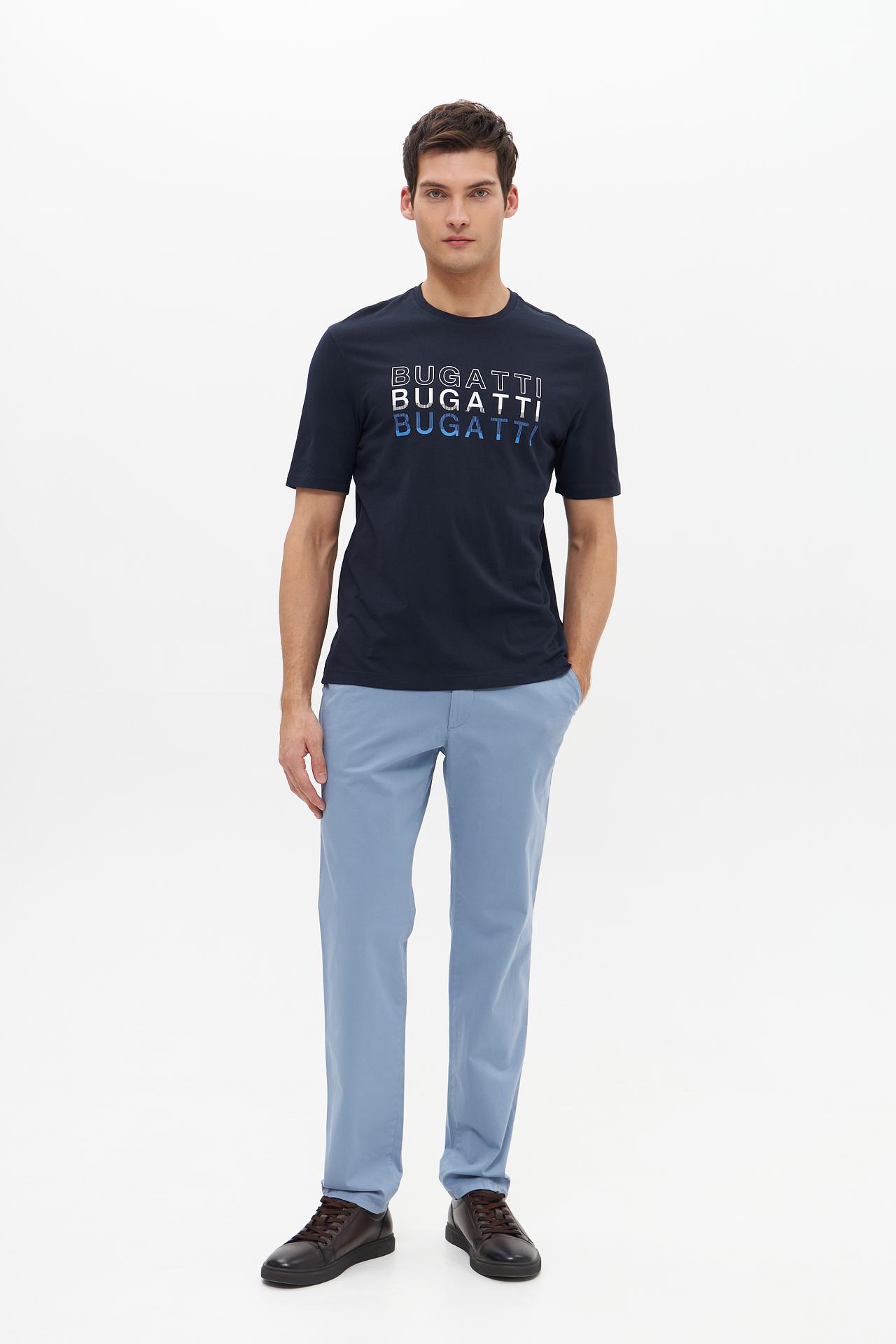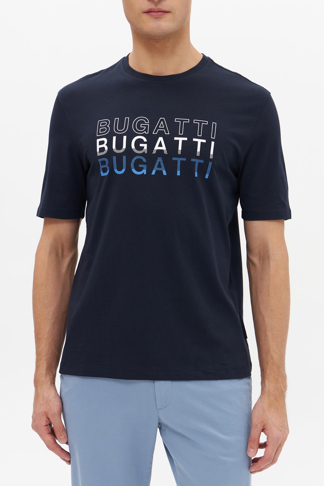 Мужская футболка Bugatti синяя, с контрастным принтом логотипа