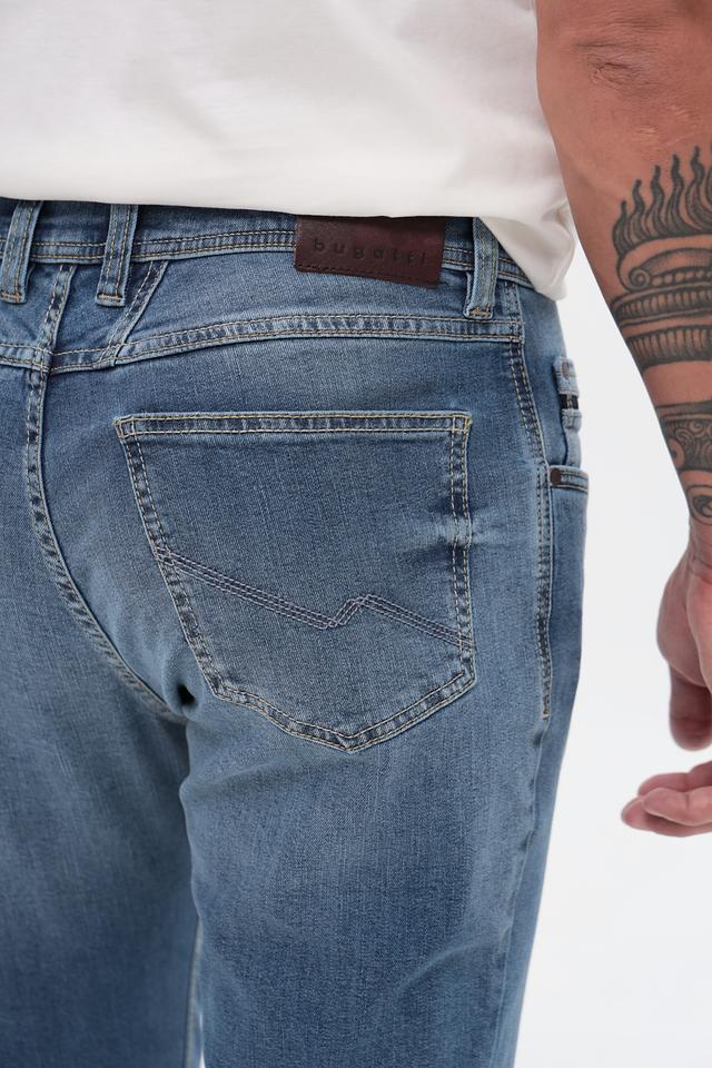 Представляем стильные мужские джинсы от бренда Bugatti. Модель выполнена в классическом синем цвете, который легко сочетается с различными элементами гардероба.