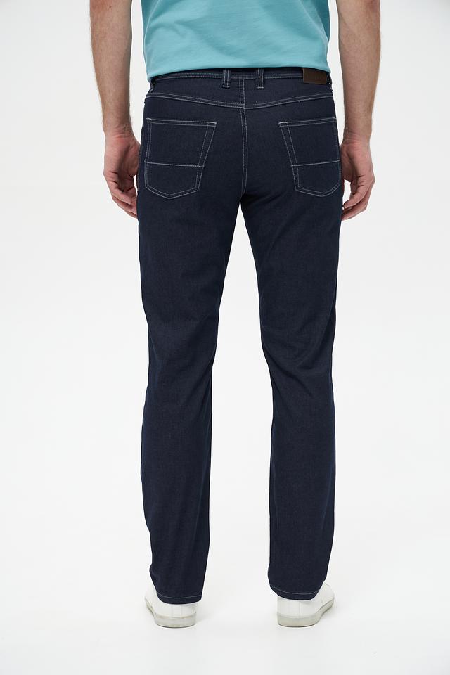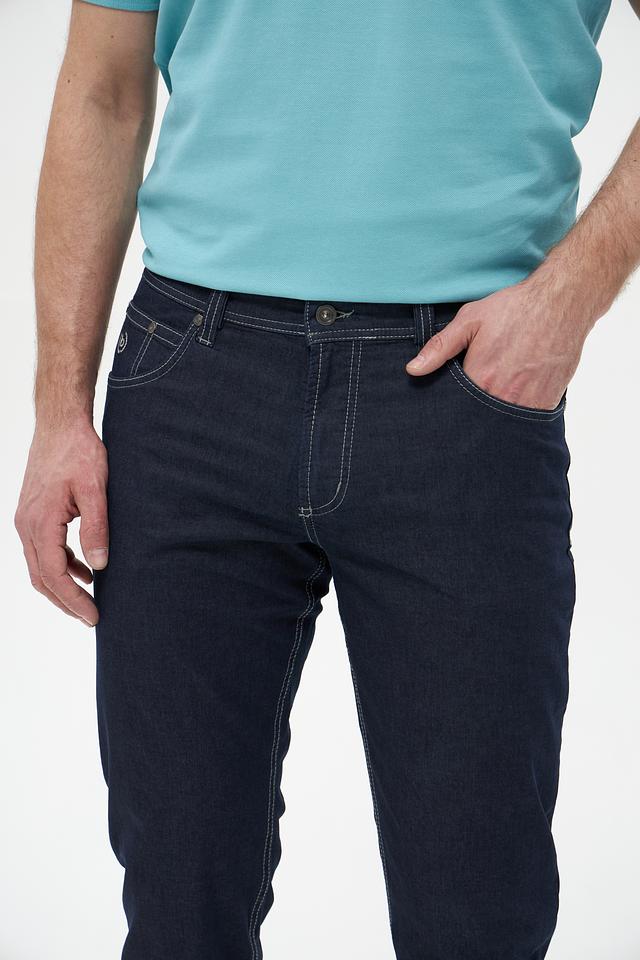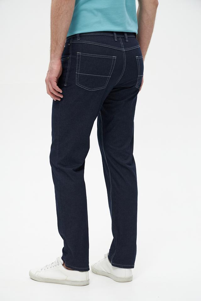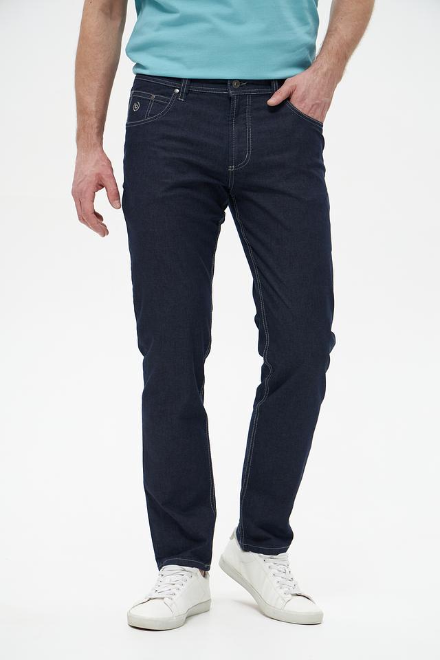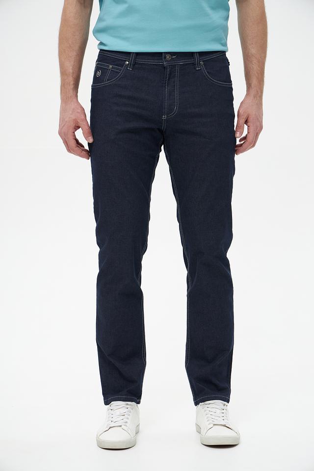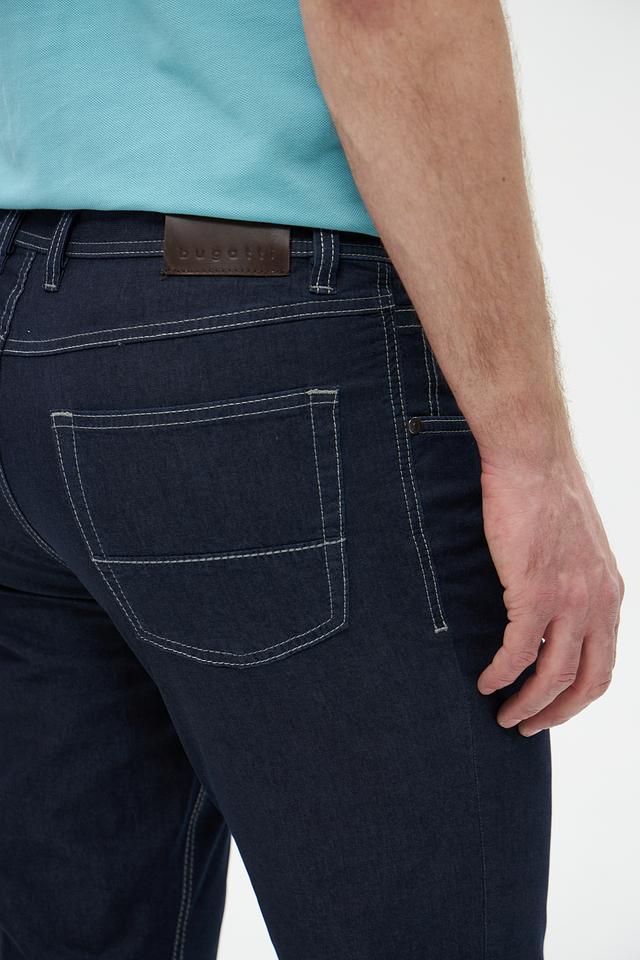 Мужские джинсы Bugatti тёмно-синего цвета с контрастной белой строчкой – стильное и удобное решение для повседневного образа. Классический крой и качественный состав обеспечивают комфорт и долговечность. Состав: хлопок 96%, эластан 4%