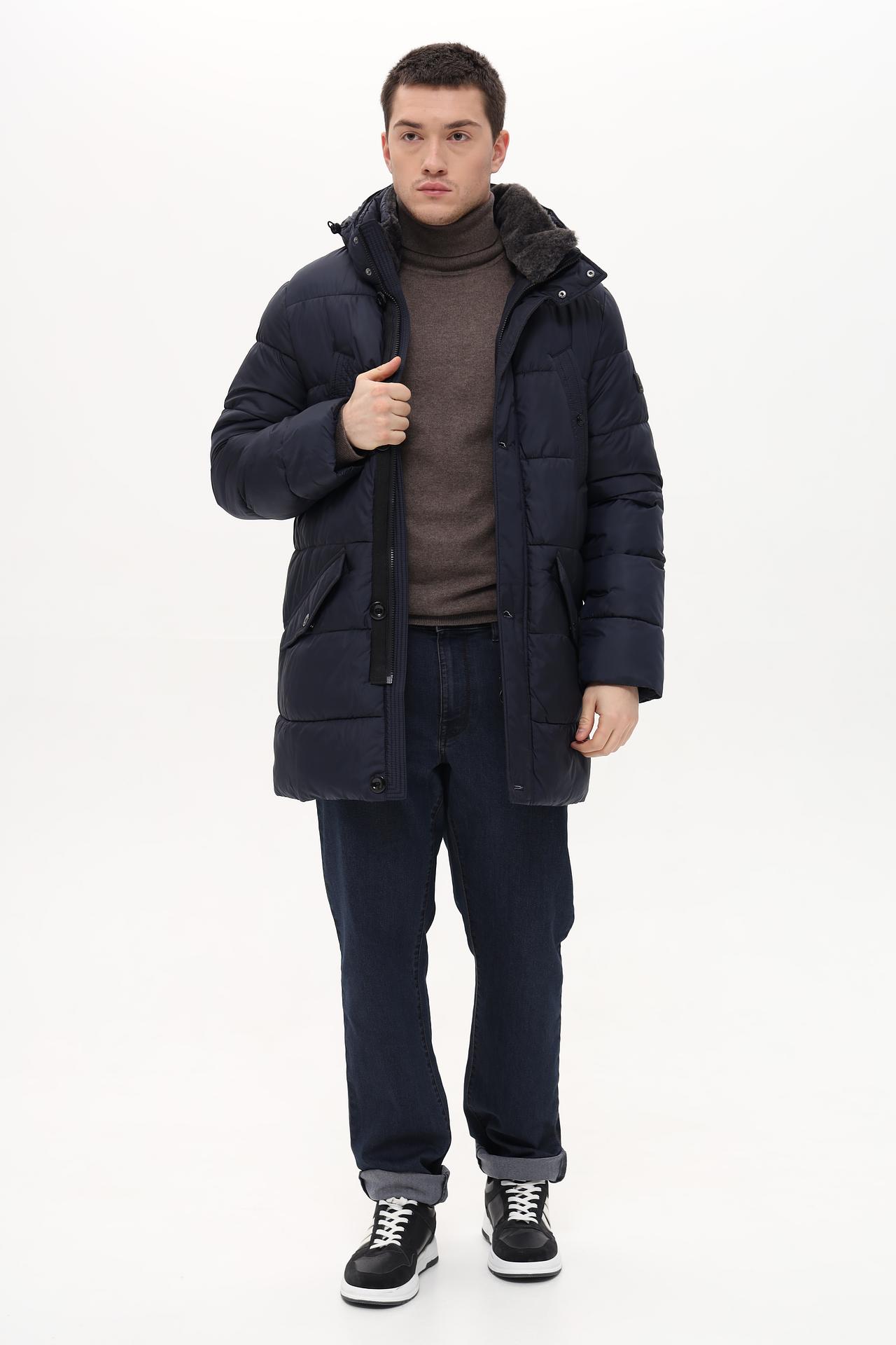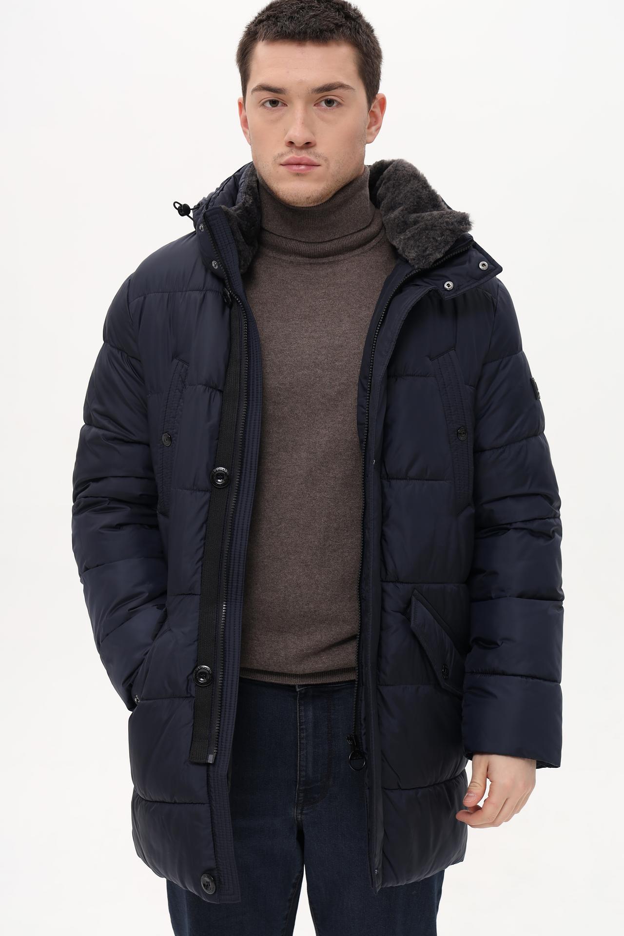 Мужское пальто New Canadian, темно-синее, с меховым воротником