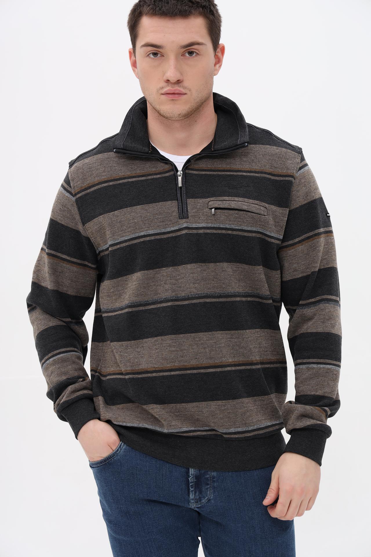 Мужской джемпер Monte Carlo, полосатый, с молнией и карманом