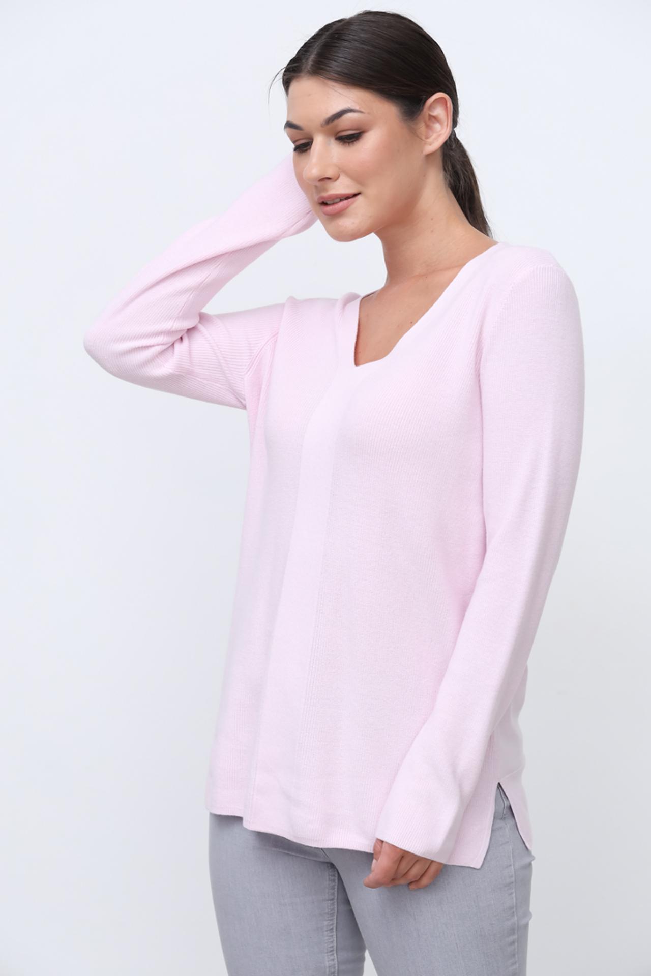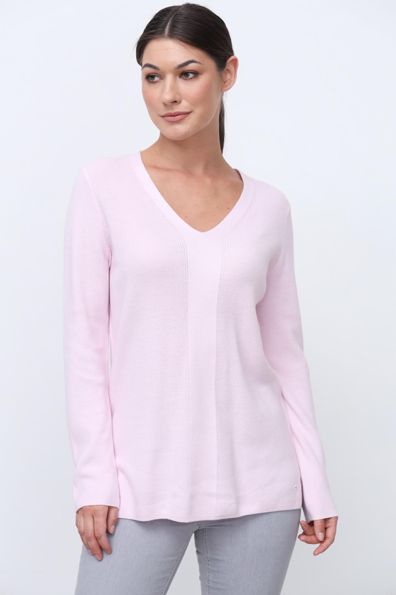 Пуловер Olsen розовый V-образный вырез длинный рукав