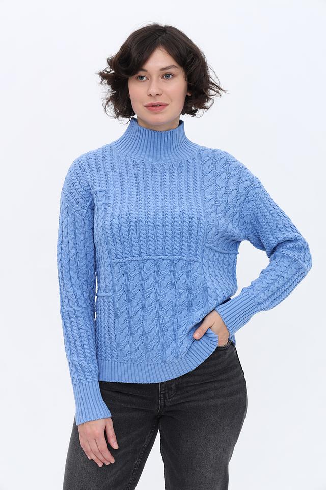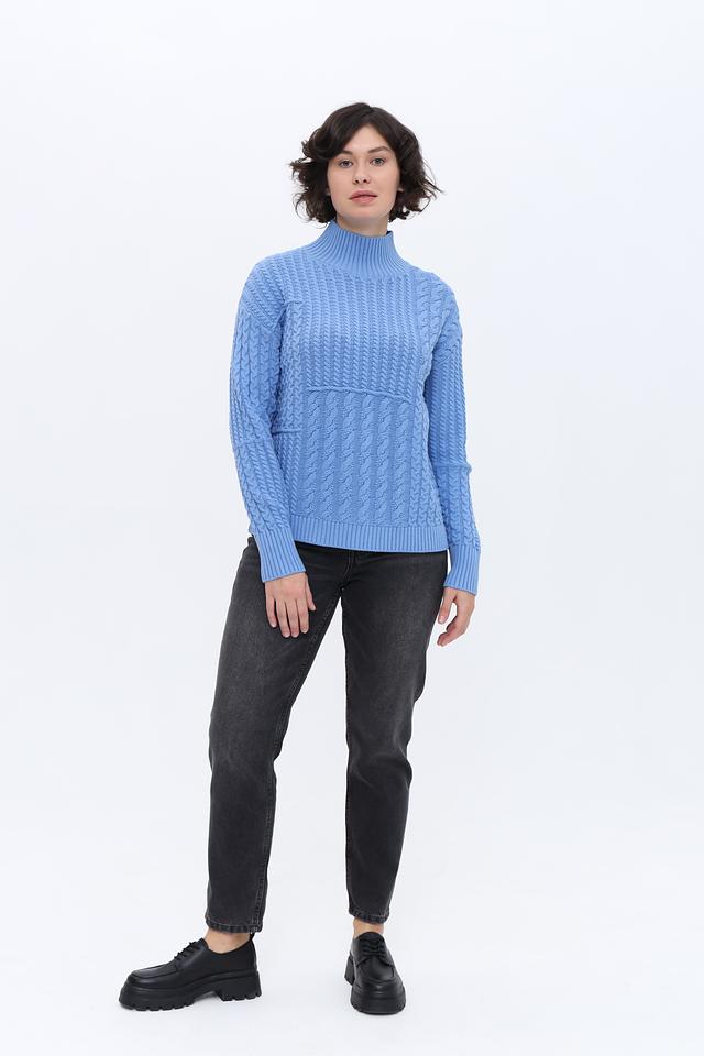 Голубой пуловер от Olsen из хлопка и полиакрила с выразительным узором из кос. Модель с высоким воротом и рукавами средней длины станет отличным дополнением к вашему гардеробу. Состав: хлопок 60%, полиакрил 40%