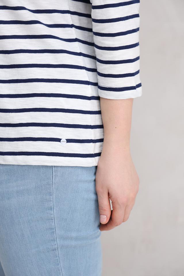 Эта блуза от Olsen – отличный выбор для создания повседневного образа. Она выполнена в классическую бело-синюю полоску, что придает ей универсальность и легкость сочетания с другими элементами гардероба.