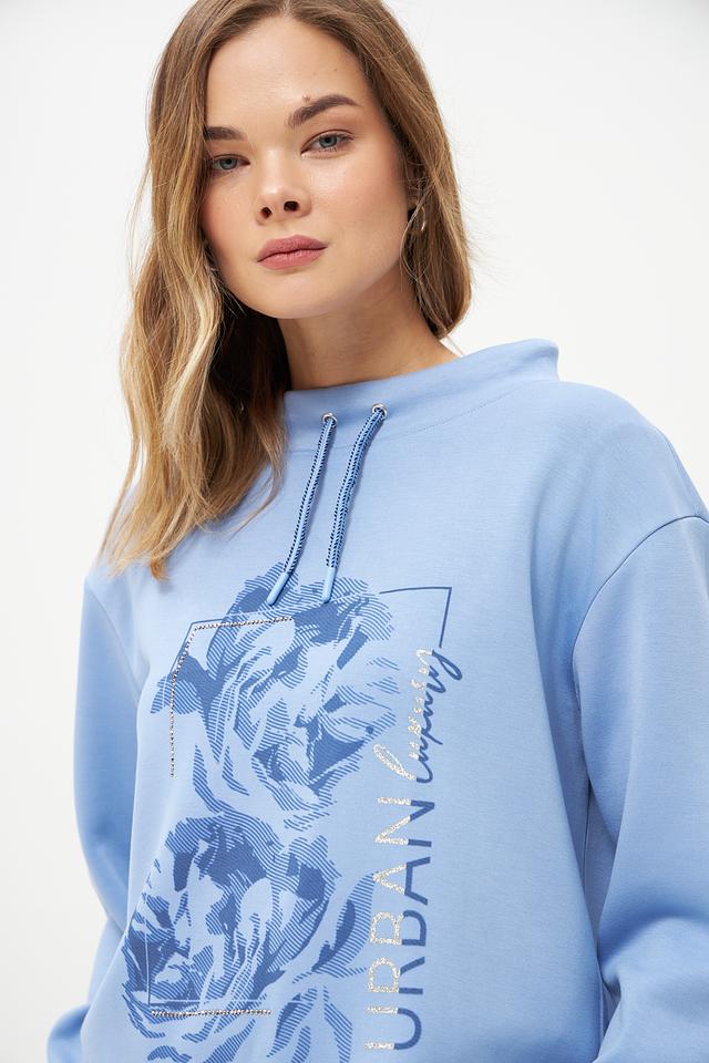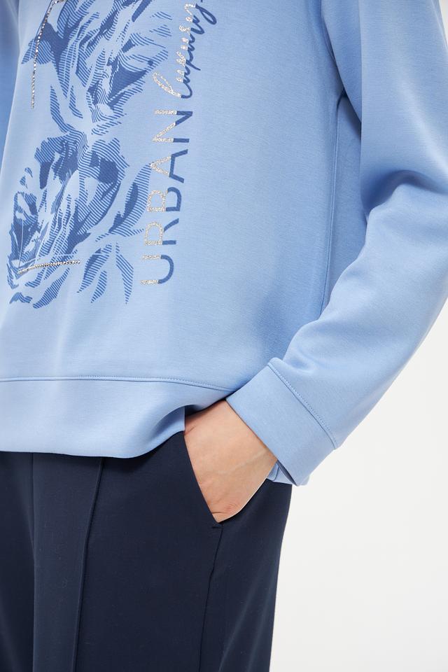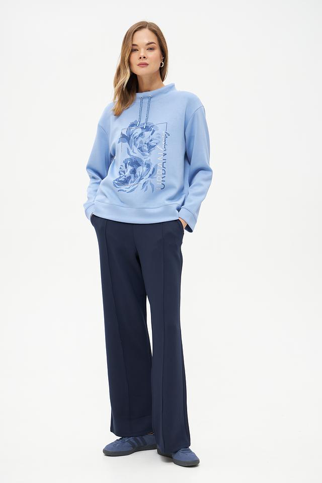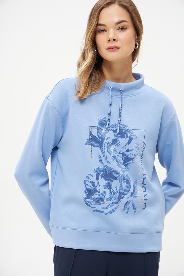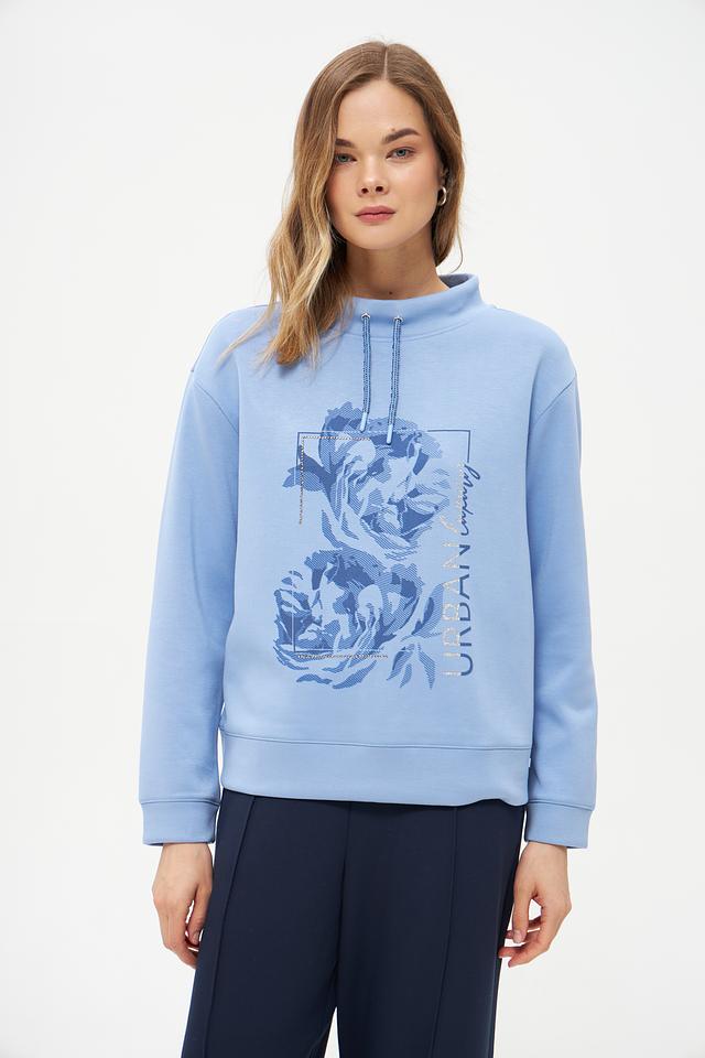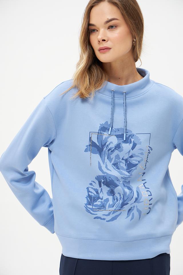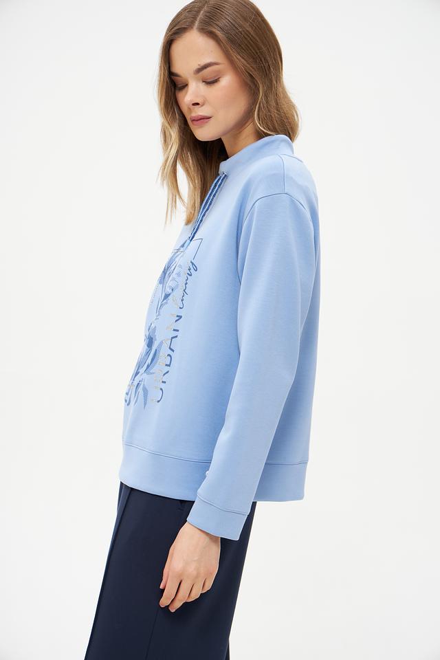 Этот стильный пуловер от бренда Olsen выполнен в нежном голубом цвете и украшен ярким цветочным принтом. Модель имеет удобный крой и слегка завышенную горловину с завязками-шнурками.