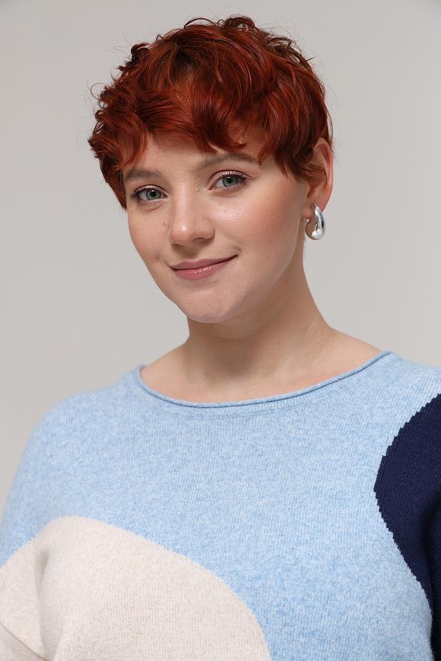 Модель имеет свободный крой и круглый вырез горловины, что обеспечивает комфортную посадку по фигуре. Пуловер изготовлен из мягкого и приятного к телу трикотажа, в составе которого вискоза, полиэстер и полиамид. Такое сочетание материалов обеспечивает изделию хорошую износостойкость и простоту в уходе.