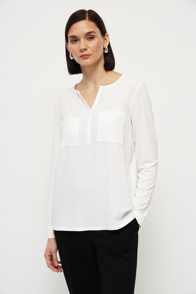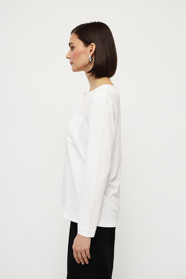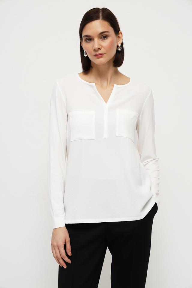 Белая блузка Olsen из вискозы с длинными рукавами и накладными карманами. Изделие выполнено из мягкой и приятной к телу ткани, в составе которой вискоза, полиэстер и эластан. Состав: вискоза 63%, полиэстер 33%, эластан 4%