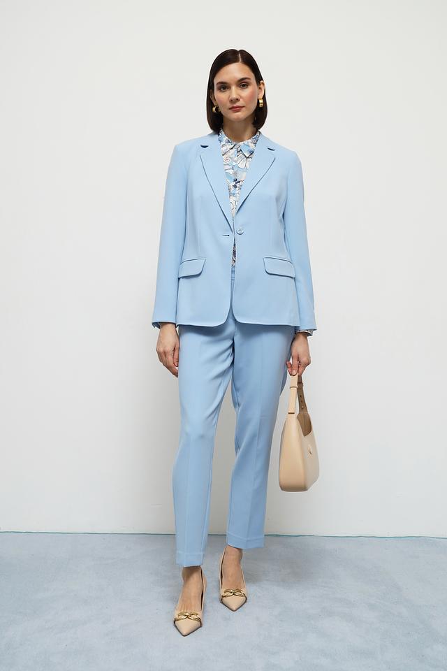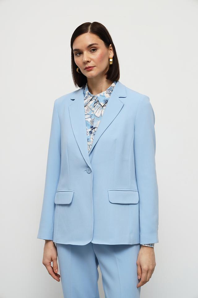 Этот элегантный жакет от Olsen станет прекрасным дополнением к вашему гардеробу. Выполненный в нежном голубом цвете, он идеально подходит для создания как деловых, так и повседневных образов.