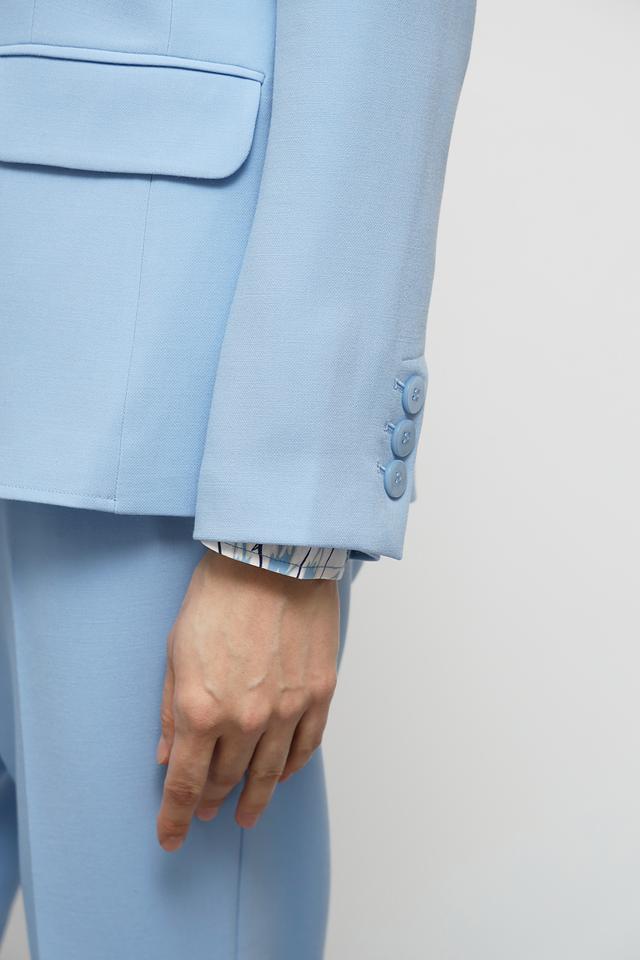 Жакет имеет приталенный силуэт, который подчеркивает фигуру. Классический лацкан и застежка на одну пуговицу придают модели лаконичный и утонченный вид. Длинные рукава с аккуратными манжетами дополняют образ.