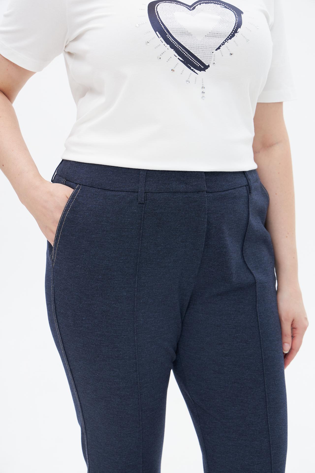 Прямой крой визуально вытягивает силуэт, а декоративные отстрочки по всей длине брючин добавляют изысканности и акцентируют внимание на стройности ног. Удобная посадка и продуманные детали делают эти брюки незаменимым элементом современного женского гардероба.