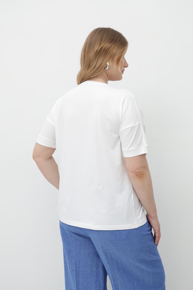 Белая футболка от Olsen с оригинальным цветочным принтом. Изготовлена из мягкого хлопка с добавлением эластана для комфорта и свободы движений. Идеально сочетается с джинсами и брюками. Состав: хлопок 95%, эластан 5%