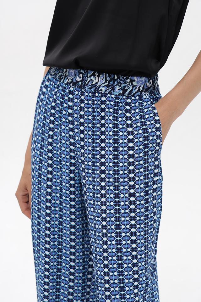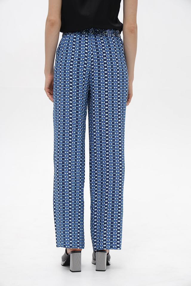 Женские брюки Olsen синего цвета с оригинальным геометрическим принтом. Изготовлены из 100% вискозы, обеспечивающей комфорт и легкость в носке. Отличный выбор для создания стильного и расслабленного образа. Состав: вискоза 100%