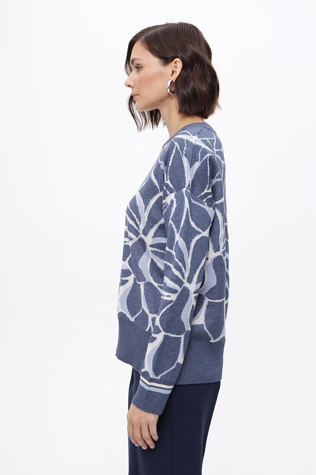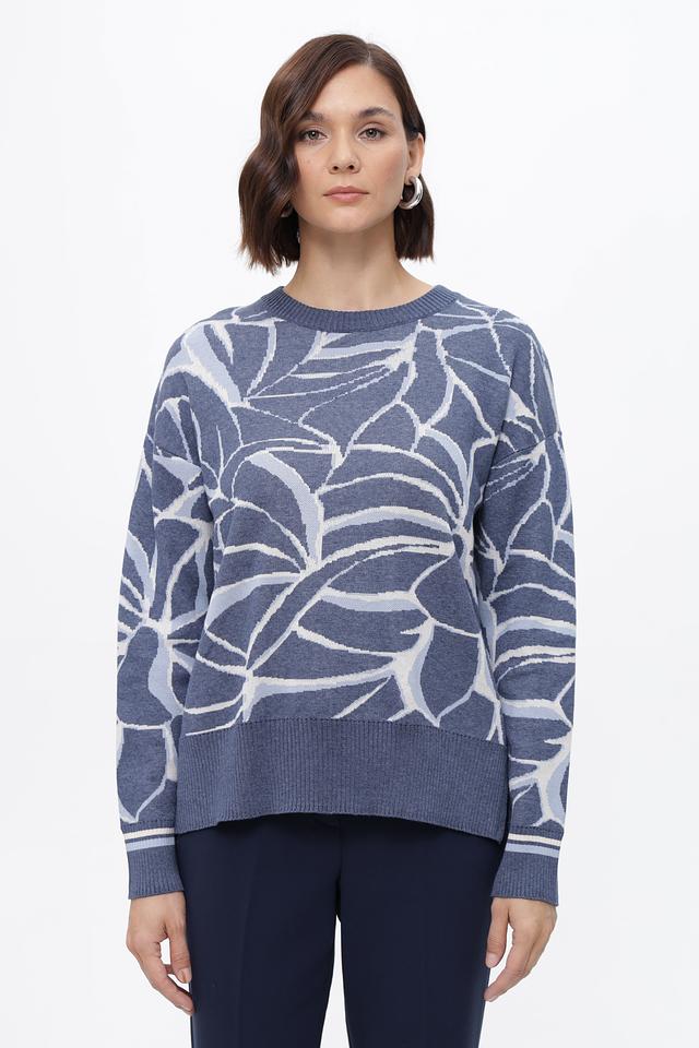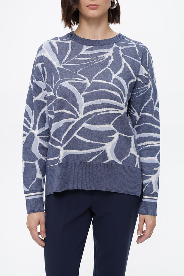 Стильный синий пуловер Olsen с оригинальным растительным принтом. Модель выполнена из мягкого трикотажа с добавлением хлопка для комфорта. Подчеркнёт ваш неповторимый стиль. Состав: хлопок 50%, акрил 50%
