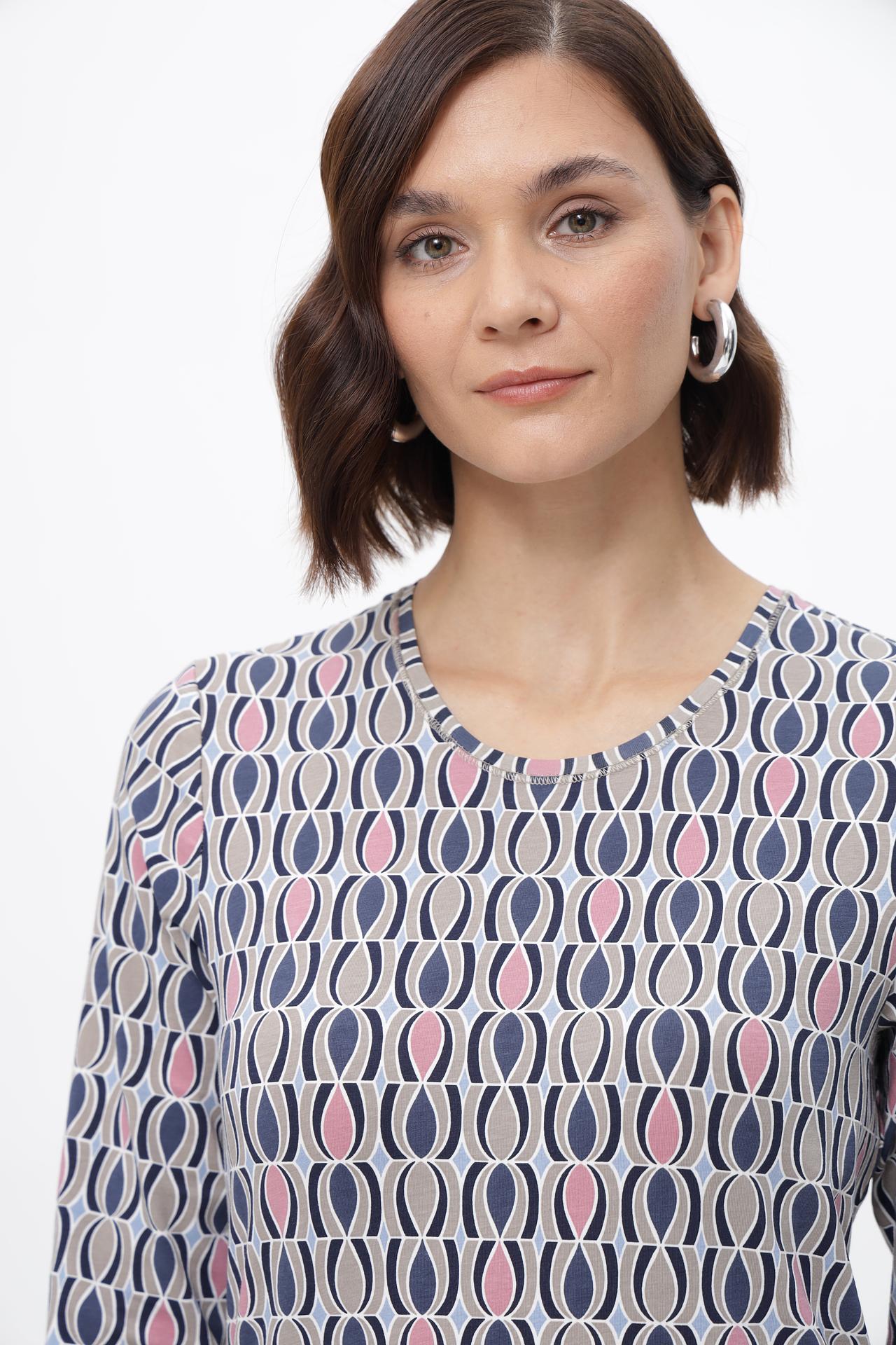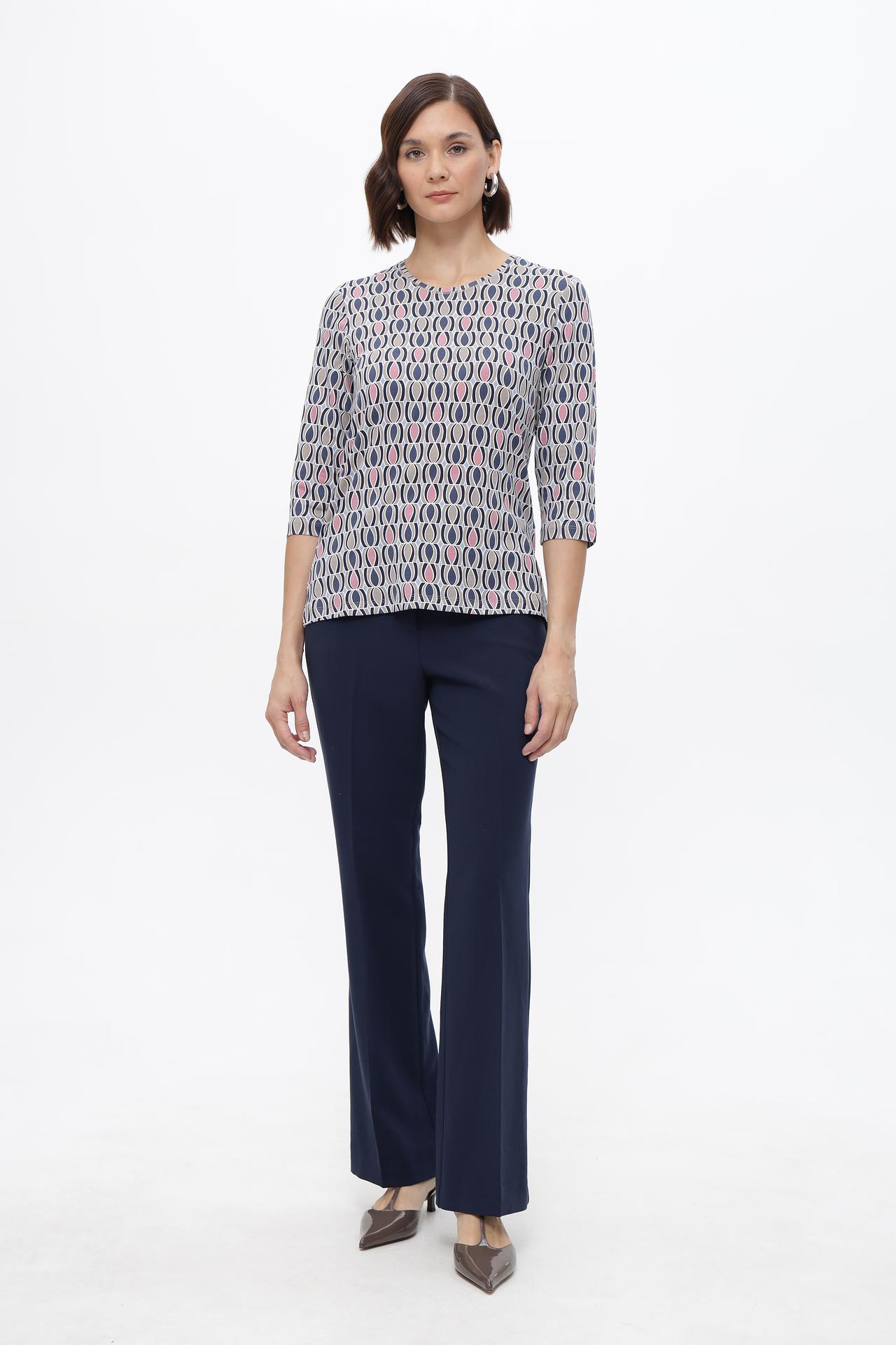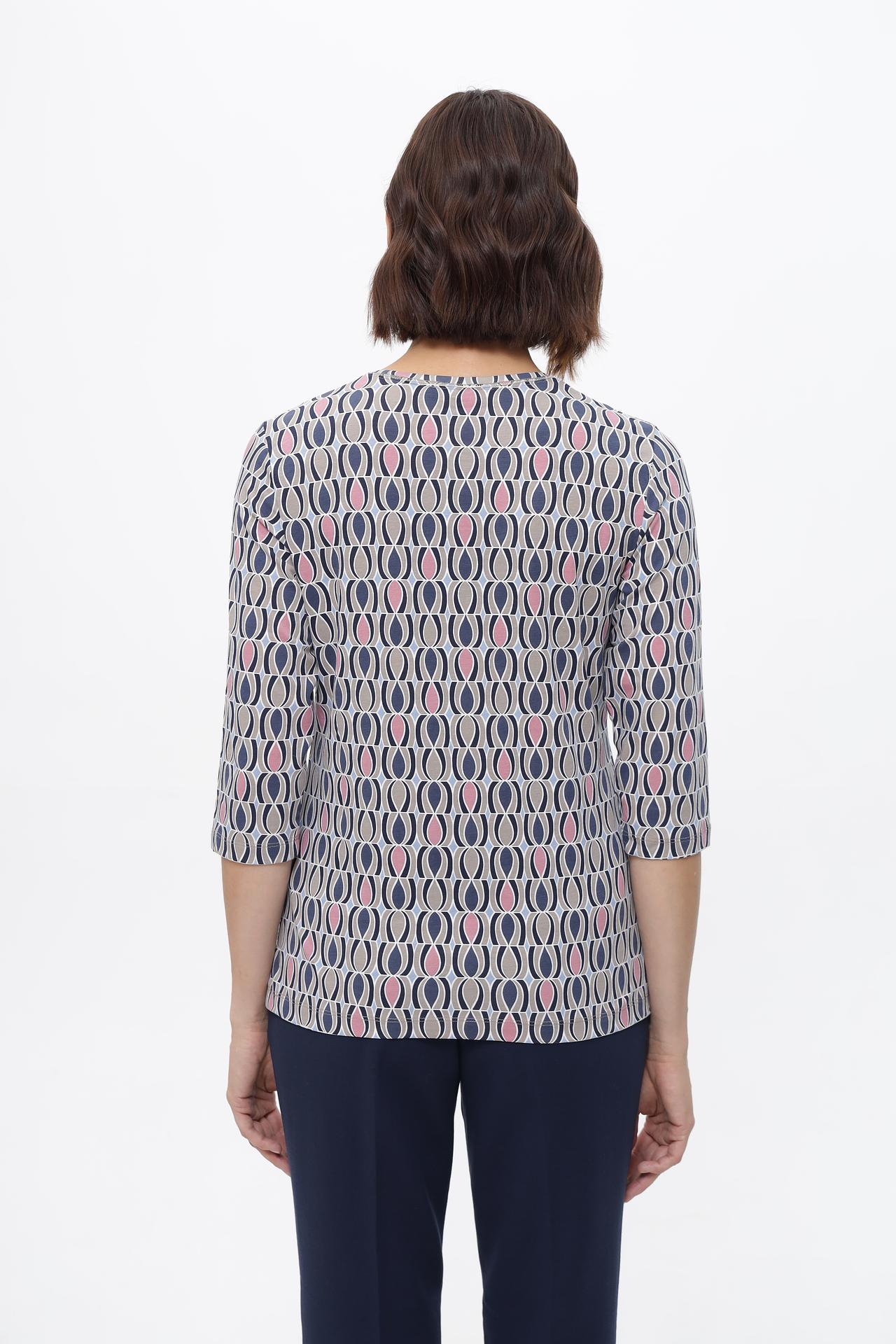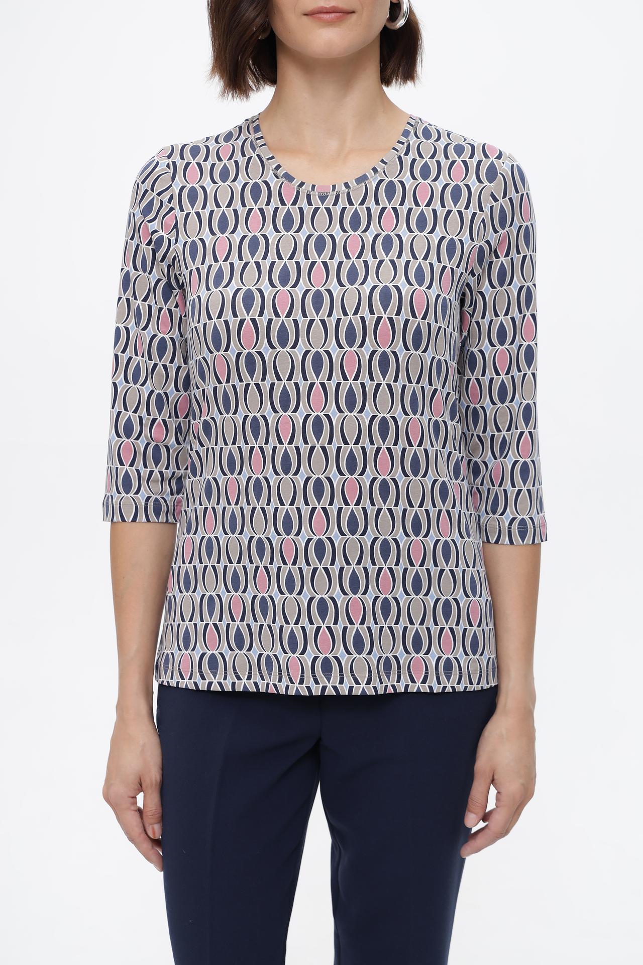 Элегантная футболка с оригинальным геометрическим принтом станет ярким акцентом вашего образа. Модель с рукавом три четверти и округлым вырезом горловины идеально подходит для повседневного гардероба. Футболка выполнена из высококачественного смесового материала, приятного к телу и обеспечивающего комфорт в течение всего дня.
