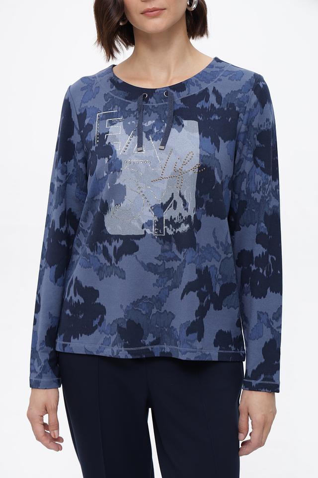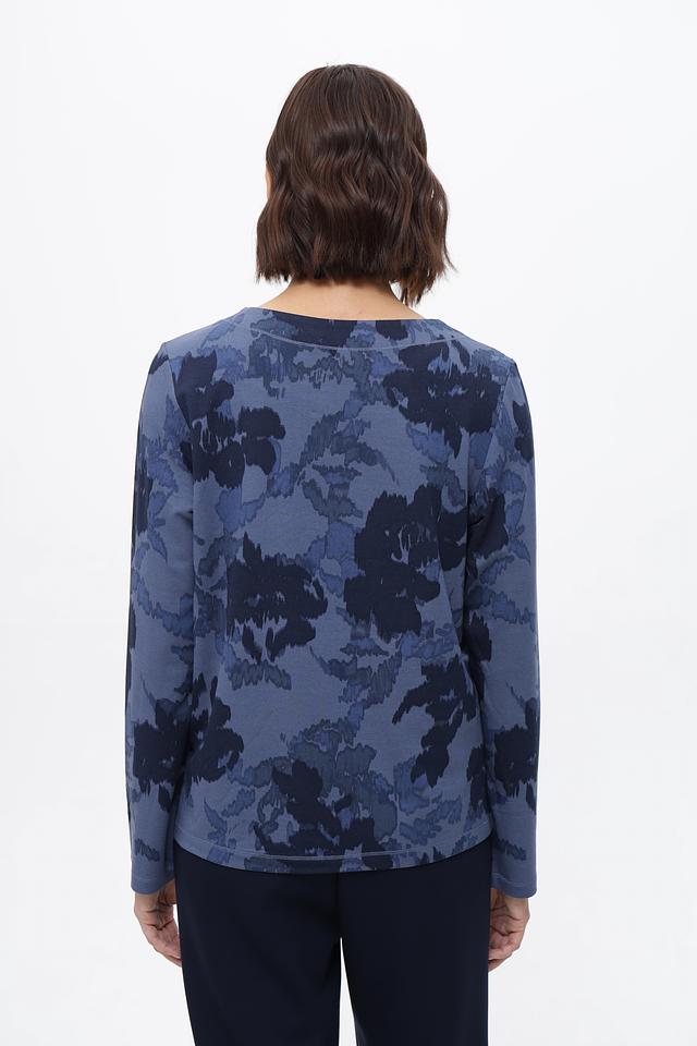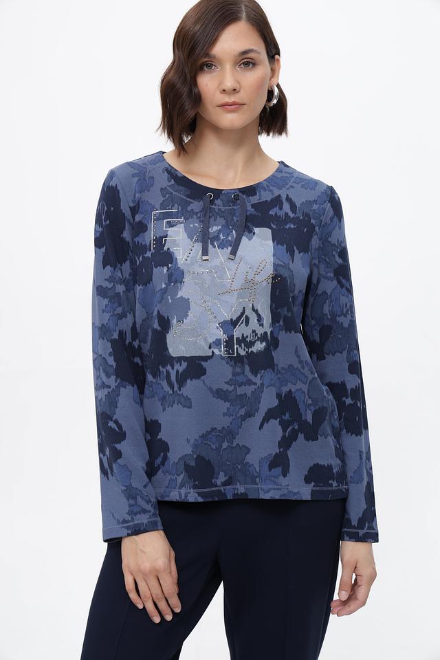 Этот пуловер от Olsen станет прекрасным дополнением к вашему гардеробу. Модель выполнена в синих тонах с оригинальным цветочным принтом, который придает ей особую изысканность.