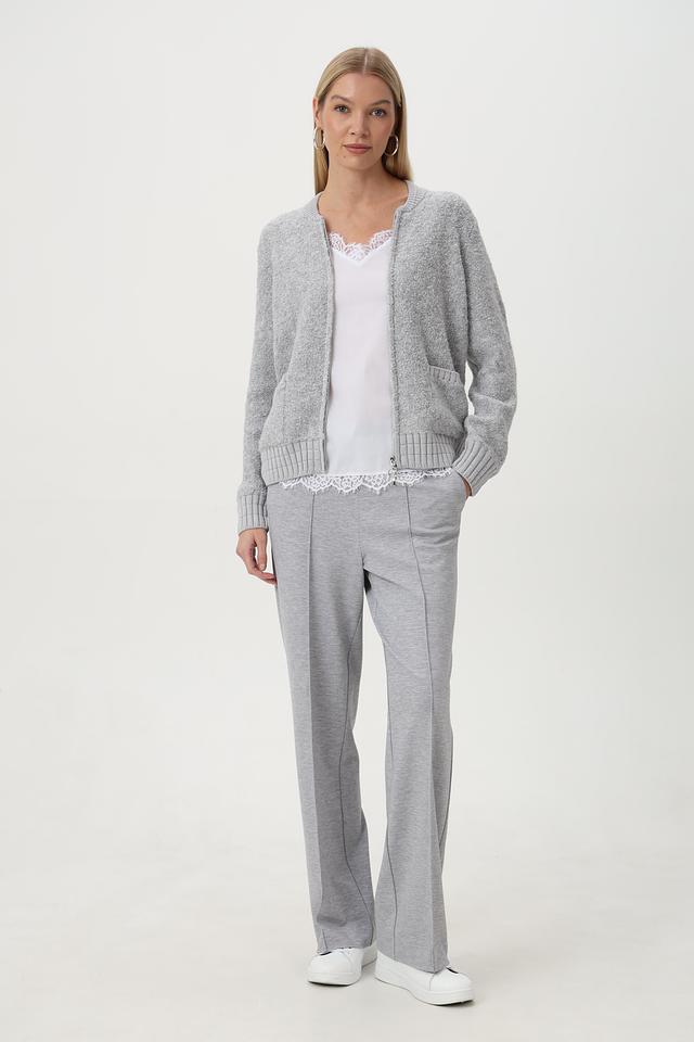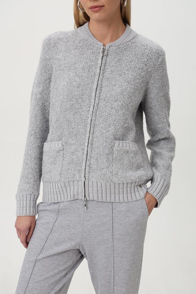 Серый жакет Olsen с застежкой-молнией — стильное и комфортное решение для прохладной погоды. Изготовлен из смесового состава с добавлением шерсти, что обеспечивает тепло и мягкость. Удобный крой и практичные карманы. Состав: полиэстер 54%, шерсть 18%, хлопок 14%, акрил 14%