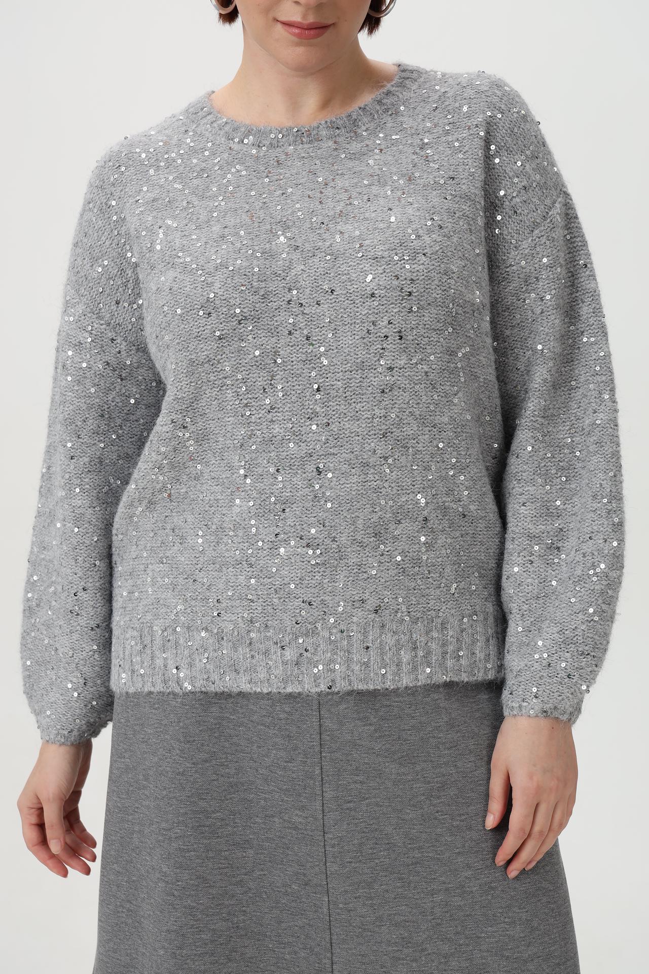 Пуловер Olsen серебристый с пайетками