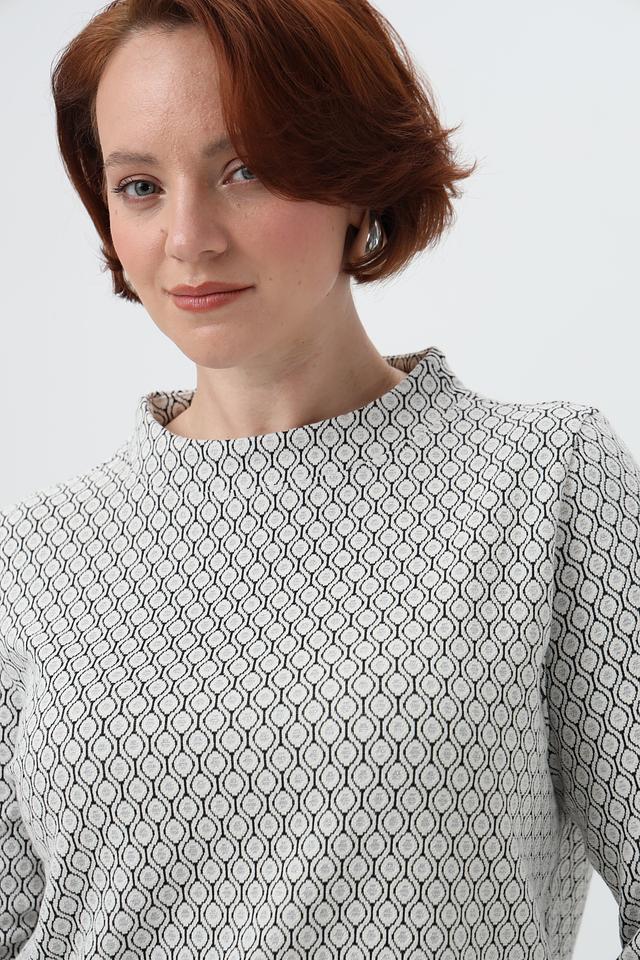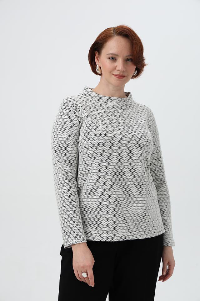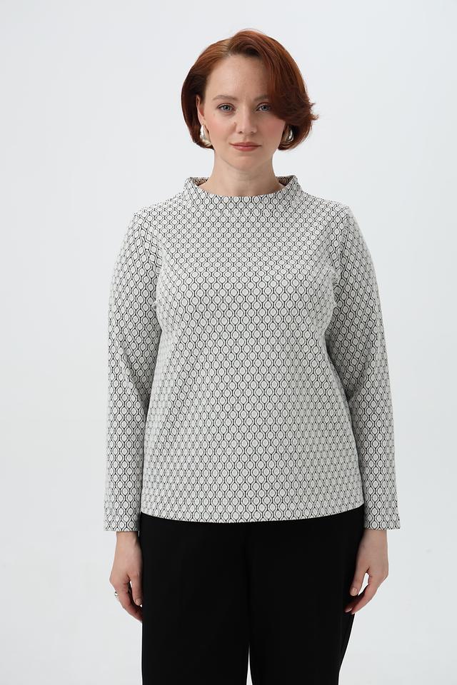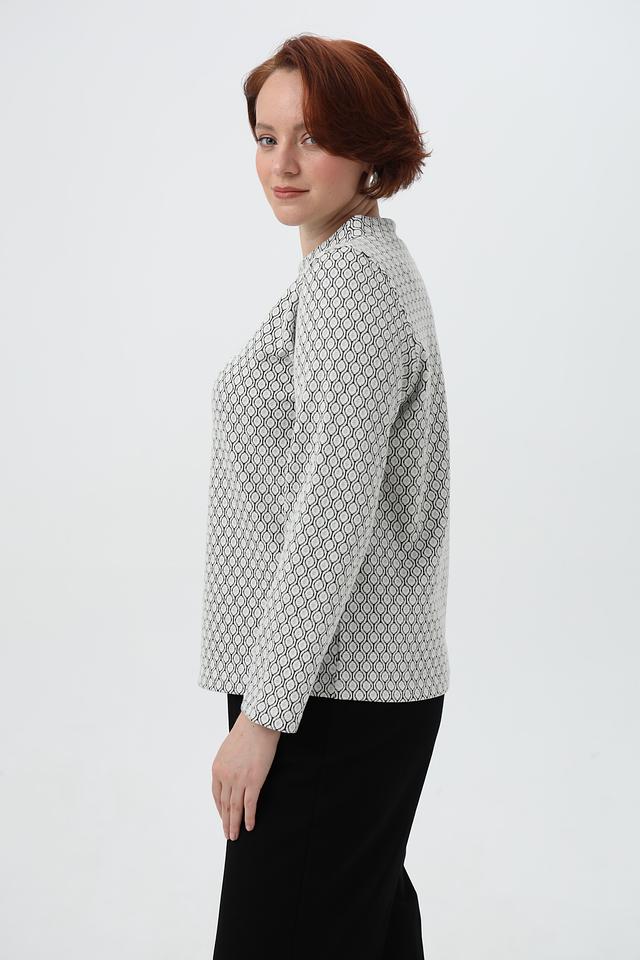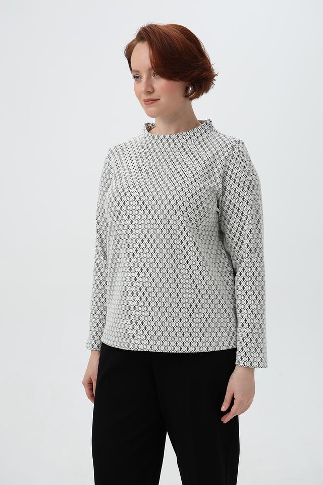 Эта блуза от Olsen – идеальный выбор для создания элегантного и женственного образа. Блуза выполнена в белом цвете и украшена графичным геометрическим принтом, который придает ей особый шарм.