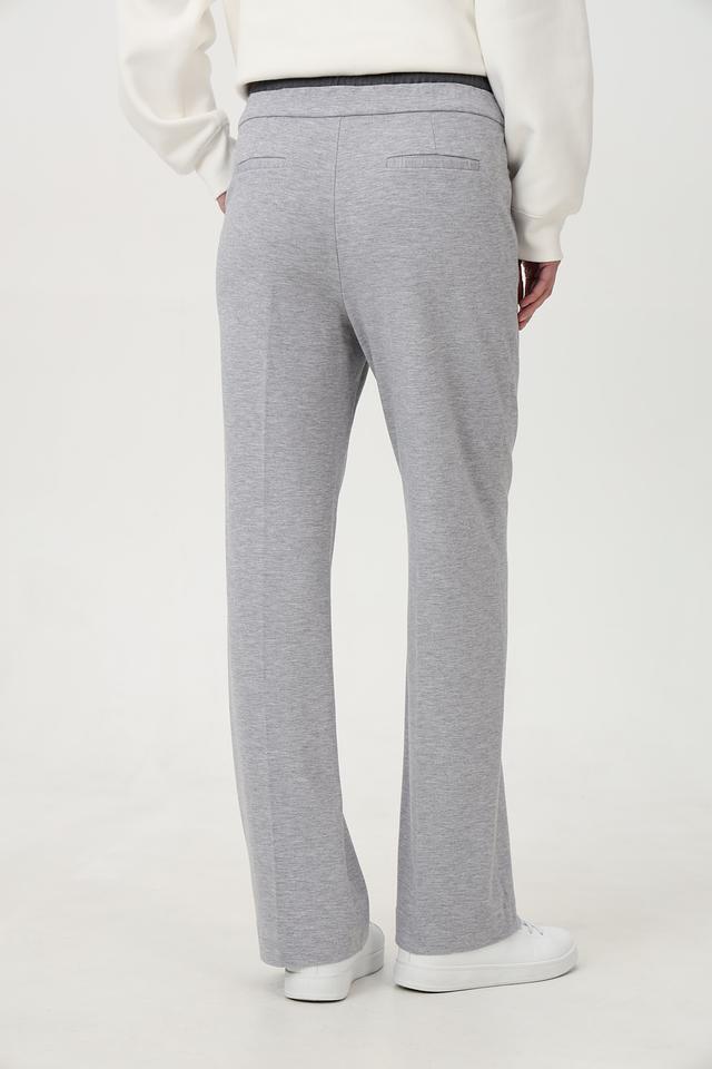 Брюки выполнены из мягкого трикотажа, который обеспечивает приятные ощущения при носке. Прямой крой визуально вытягивает силуэт, а пояс на кулиске позволяет регулировать посадку по фигуре. Боковые карманы добавляют функциональности.