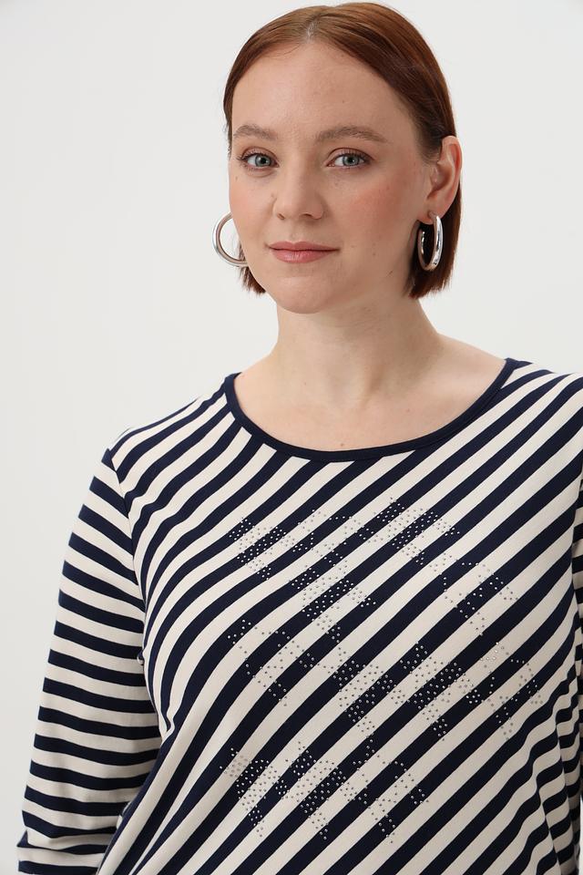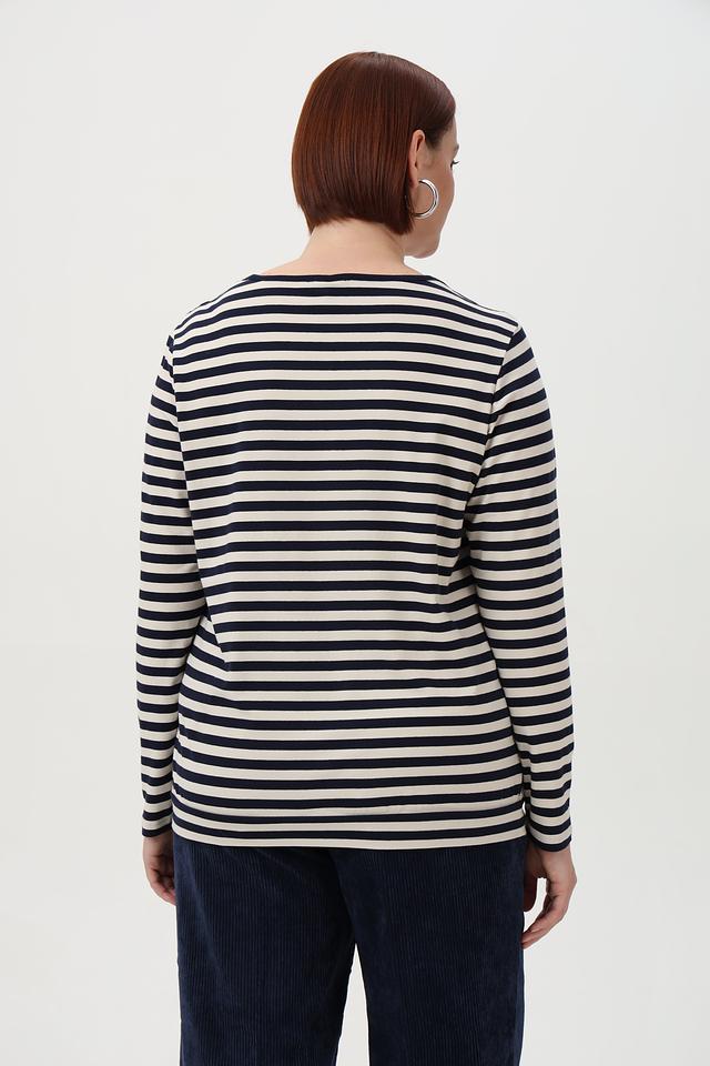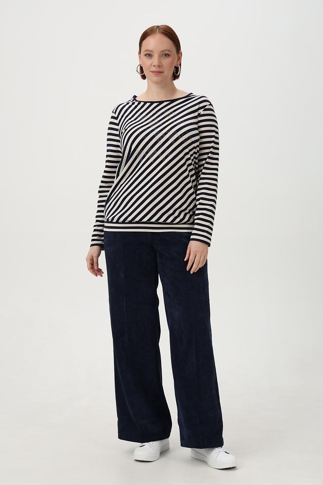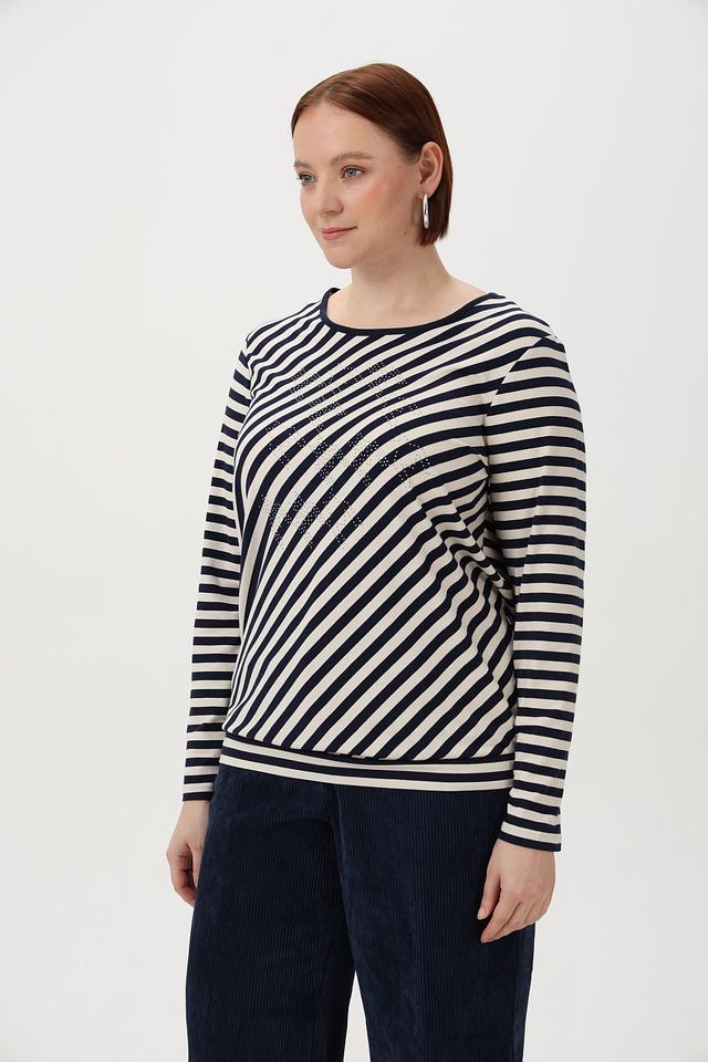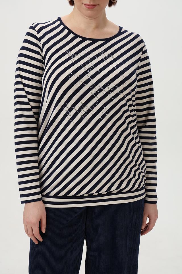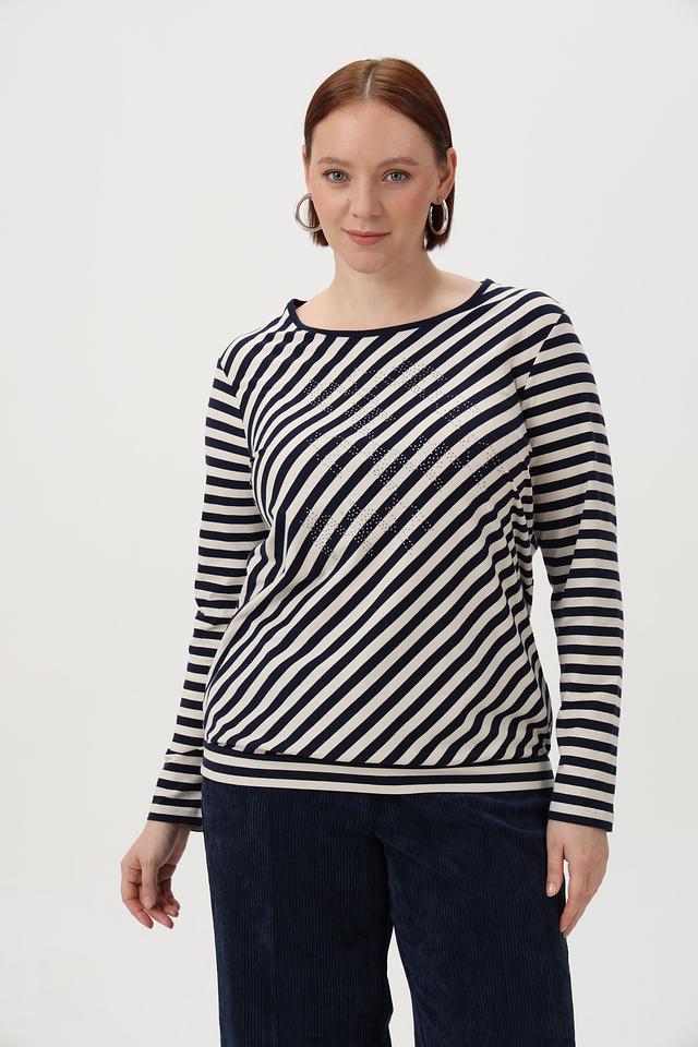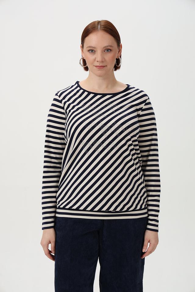 Белая блузка Olsen с синими полосами, декорированная стразами. Изготовлена из хлопка с добавлением эластана, что обеспечивает комфорт и хорошую посадку по фигуре. Состав: хлопок 95%, эластан 5%