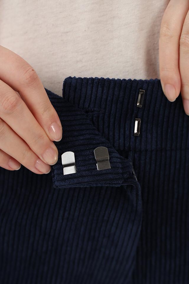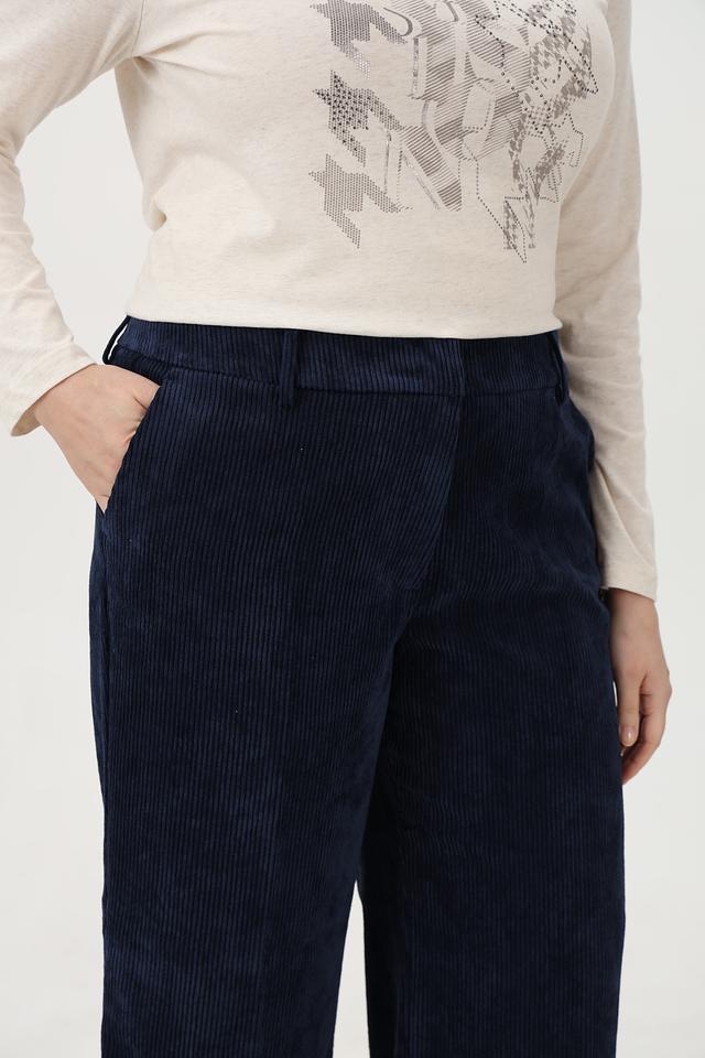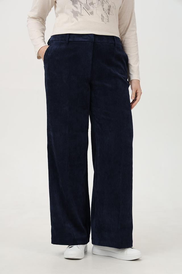 Тёмно-синие вельветовые брюки клеш от Olsen — стильное и комфортное решение для создания модных образов. Модель выполнена из полиэстера с добавлением эластана, что обеспечивает удобную посадку и практичность в уходе. Состав: полиэстер 89%, полиамид 9%, эластан 2%