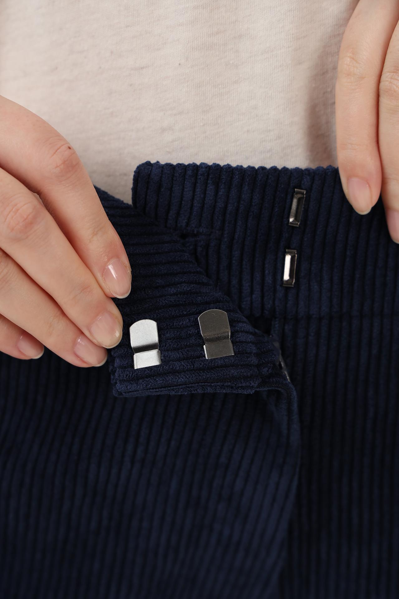 - Дизайн: Классический темно-синий цвет и вельветовая фактура делают эти брюки актуальными в любом сезоне. Модель прекрасно дополнит ваш повседневный или офисный стиль.