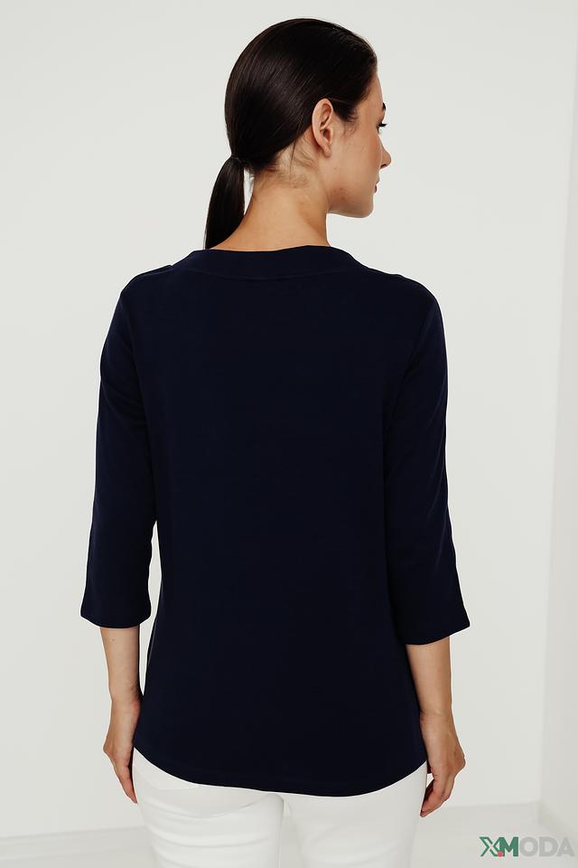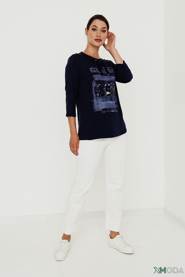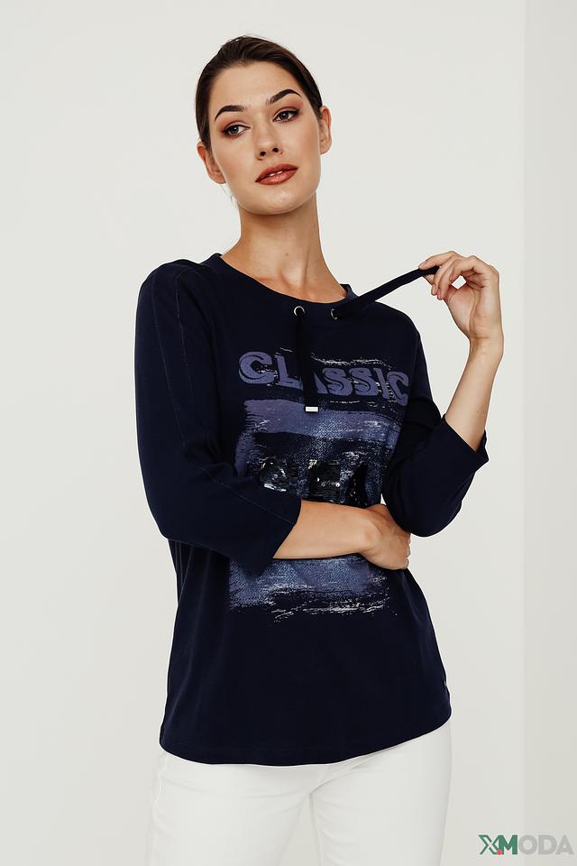 Женский пуловер Olsen темно-синего цвета с оригинальным принтом "Classic" и рукавами 3/4. Изготовлен из мягкого хлопка, обеспечивающего комфорт в носке. Стильное и удобное решение для повседневного гардероба. Состав: хлопок 100%