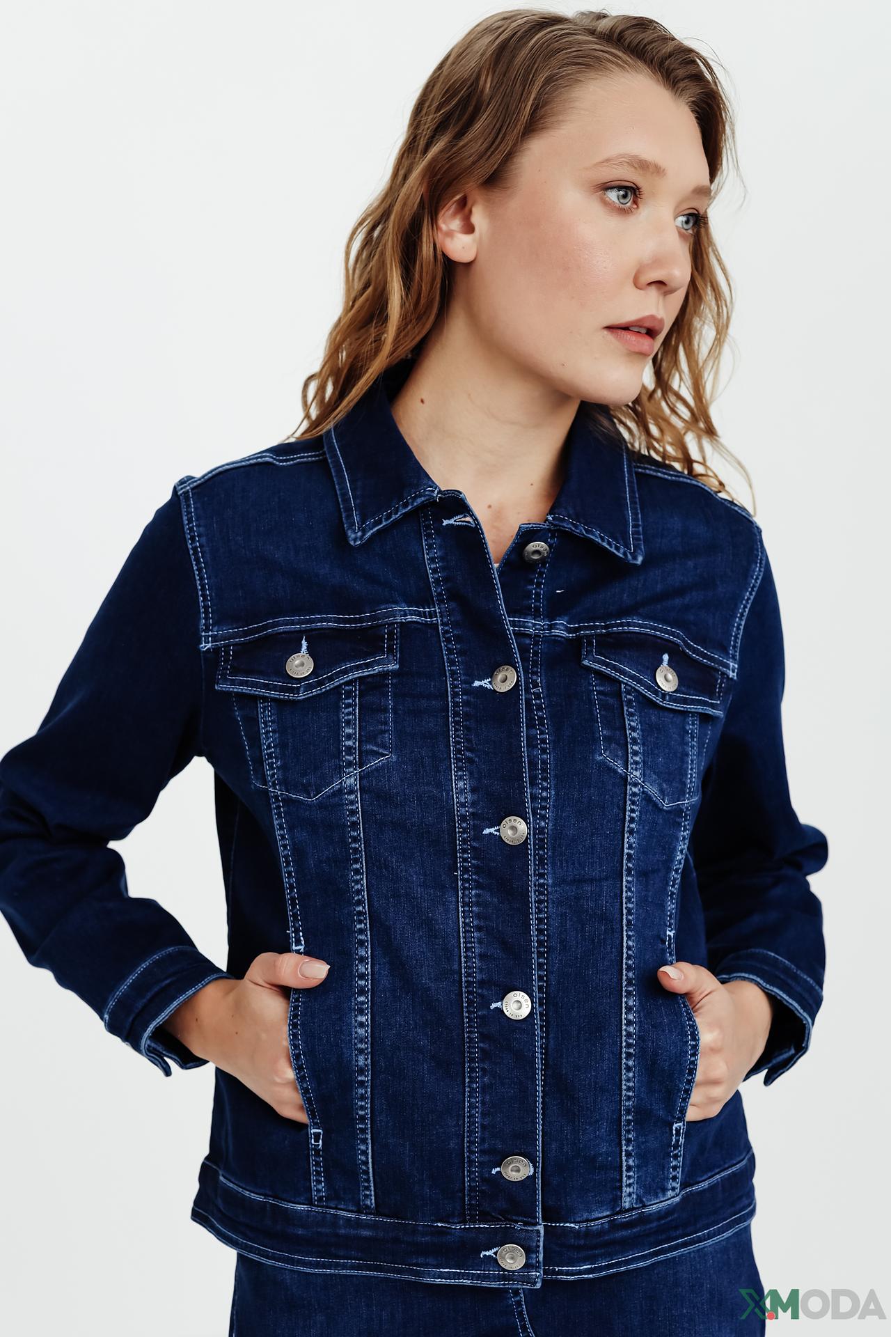 Куртка Olsen женская синяя джинсовая с серебристыми пуговицами