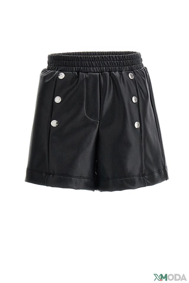 Стильные шорты Original Marines чёрного цвета, выполнены из гладкой ткани, имитирующей кожу, и декорированы металлическими кнопками. Удобная эластичная резинка на талии обеспечивает комфортную посадку. Состав: полиэстер 91%, эластан 9%