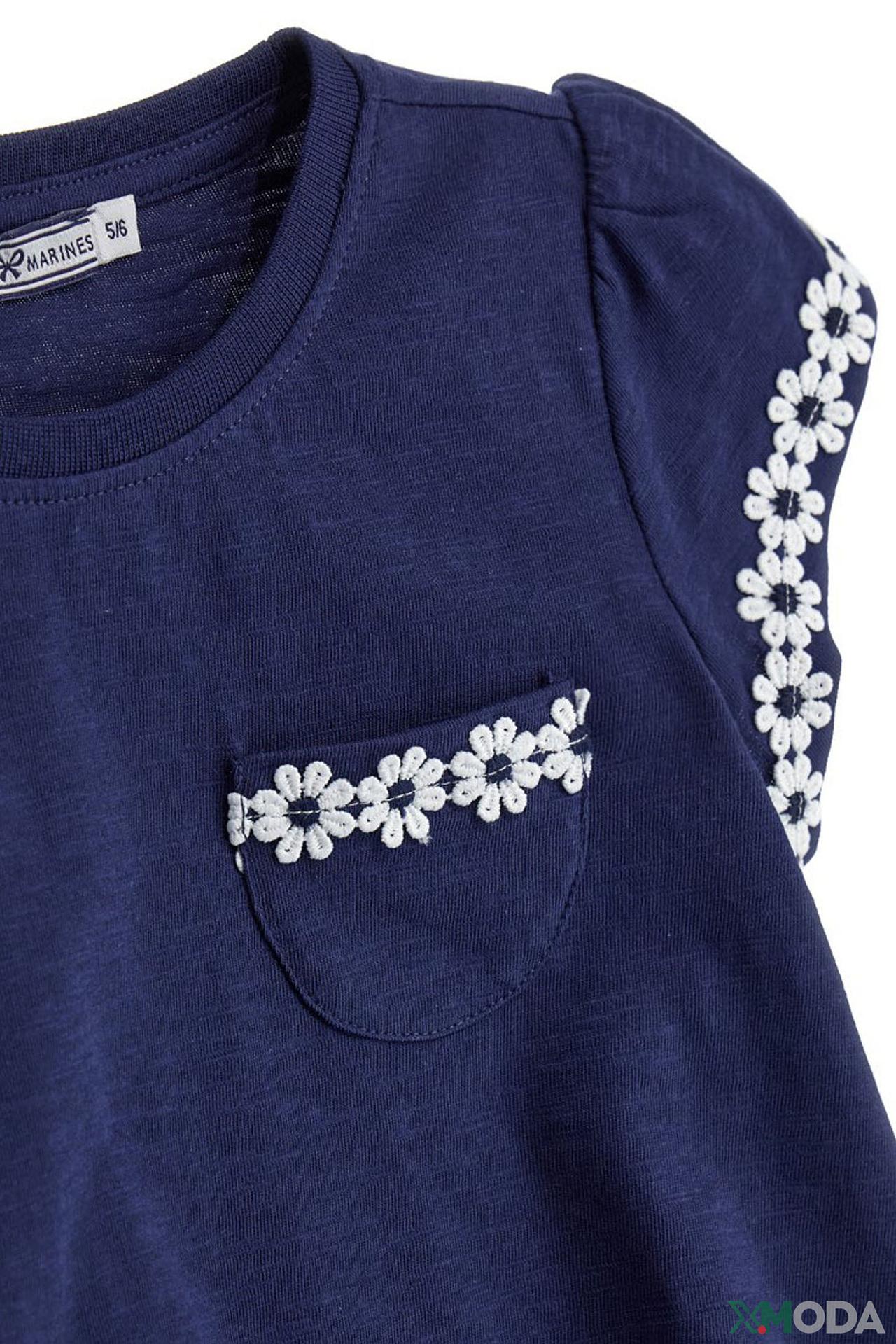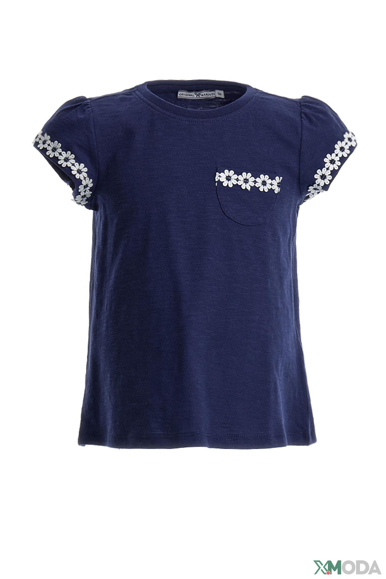 Стильная детская футболка от Original Marines – отличный выбор для маленьких модниц. Эта футболка не только выглядит мило благодаря декоративным элементам в виде ромашек на рукавах и кармашке, но и обеспечивает максимальный комфорт в течение всего дня.
