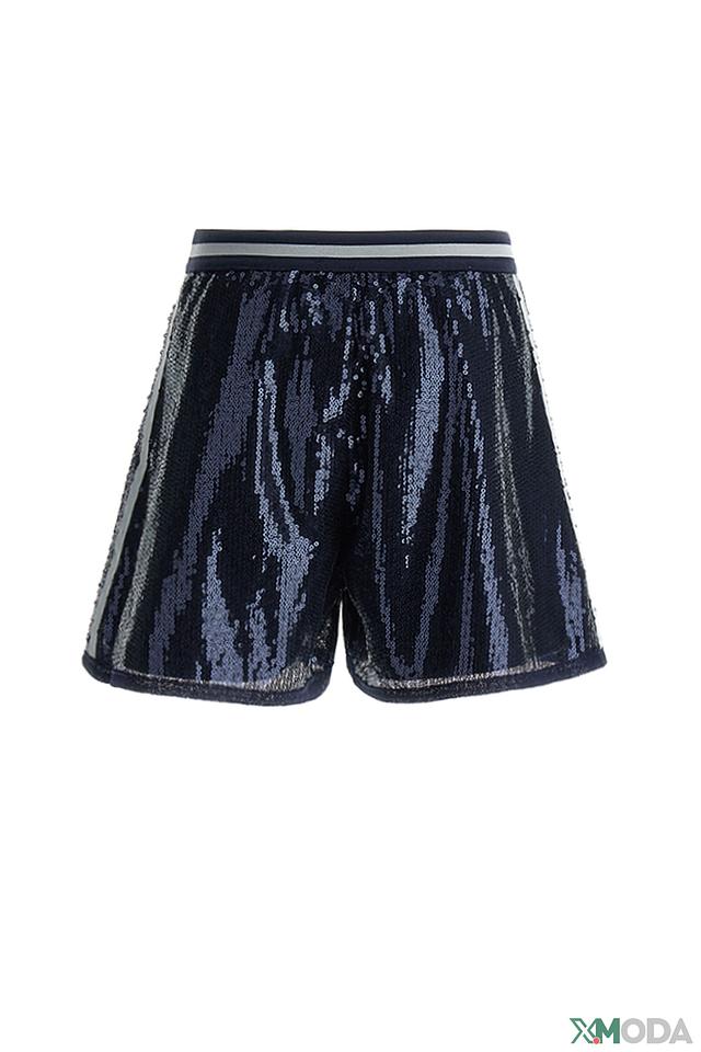 Основная часть шорт полностью покрыта мерцающими пайетками, создающими эффектный и праздничный вид. Боковые полоски добавляют динамики и спортивного шика. Удобная эластичная резинка на талии обеспечивает комфортную посадку и свободу движений.