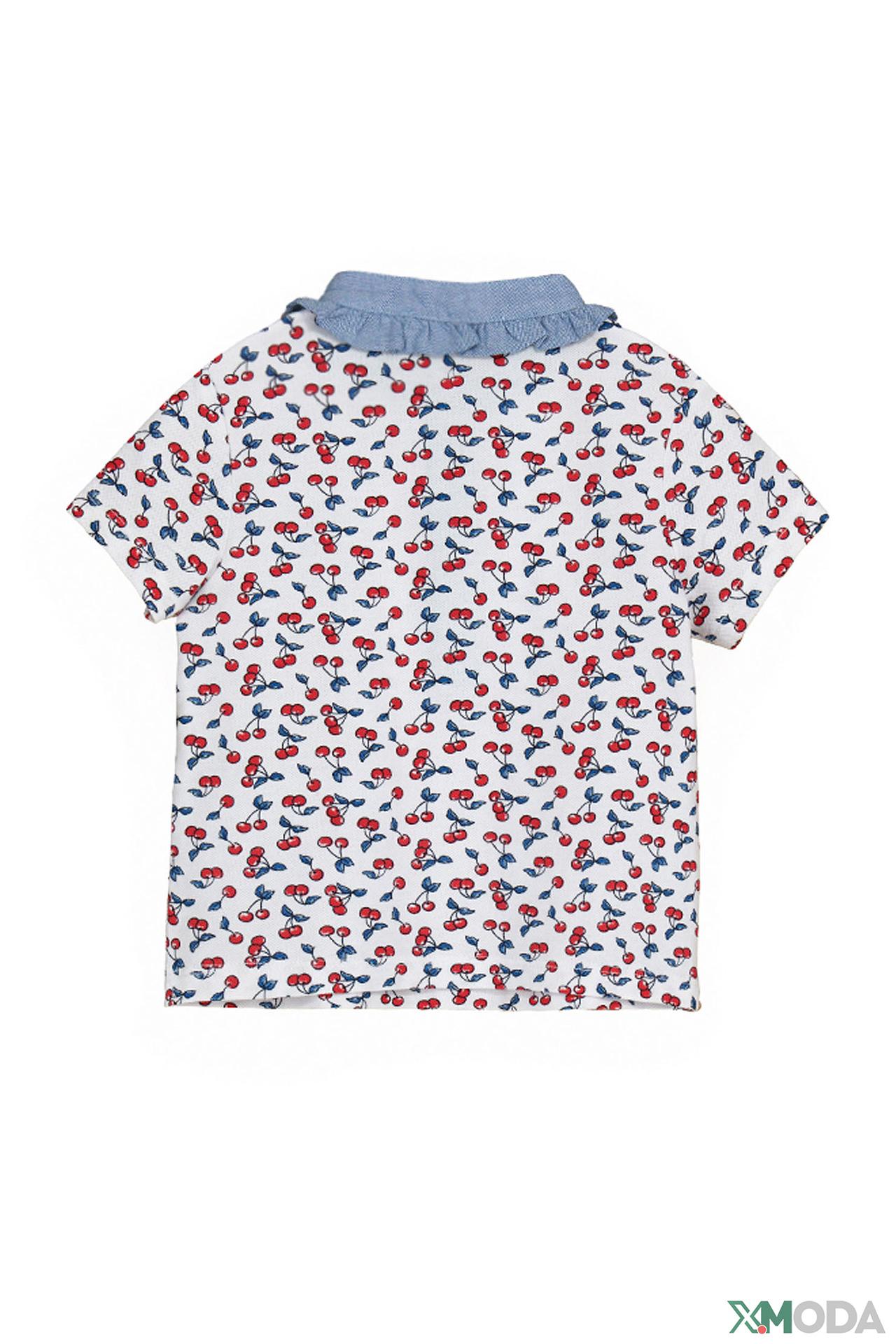 Детское поло Original Marines белое с принтом вишен и аппликацией