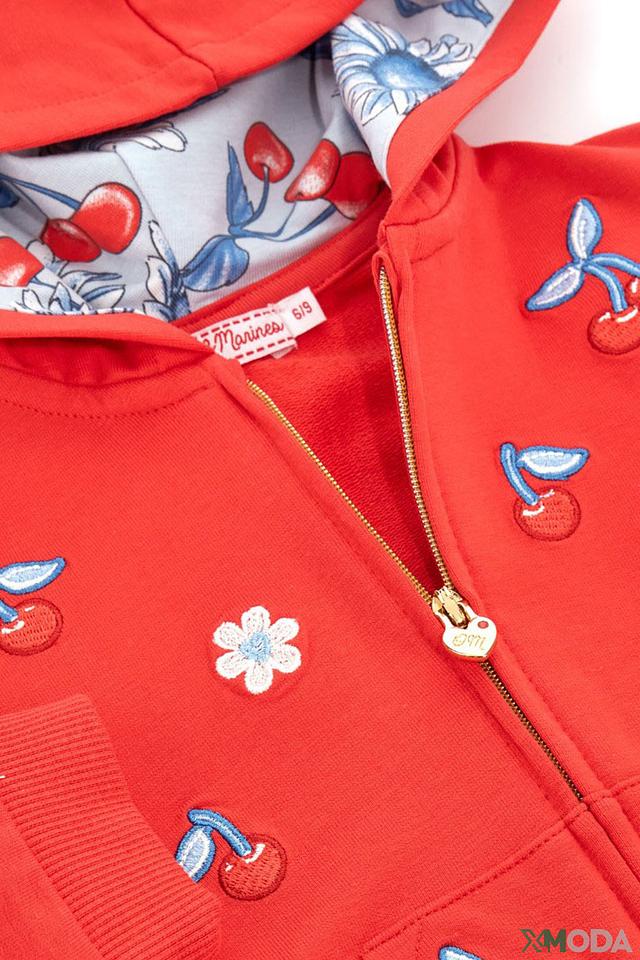 Яркая красная толстовка Original Marines для девочки, украшенная вышивкой в виде вишен и цветов. Модель на молнии с капюшоном, выполнена из мягкого хлопка с добавлением эластана для комфорта. Состав: хлопок 95%, эластан 5%