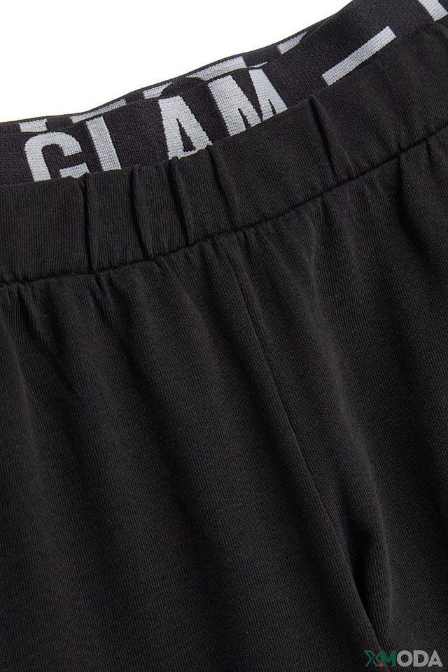 Брюки имеют удобный эластичный пояс, который не стесняет движений и обеспечивает комфортную посадку. На манжетах брюк расположена надпись с логотипом бренда, добавляющая стильный акцент.