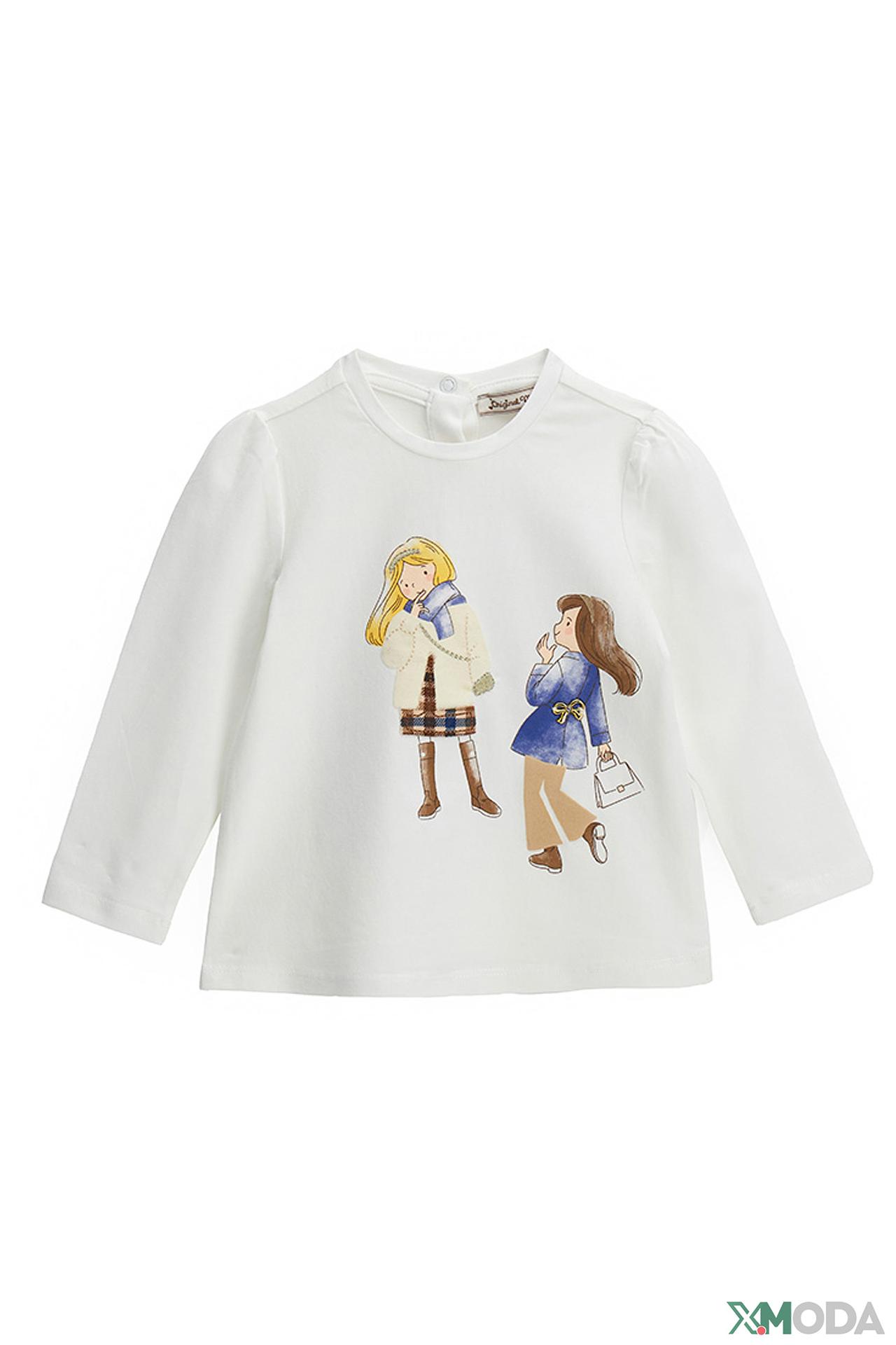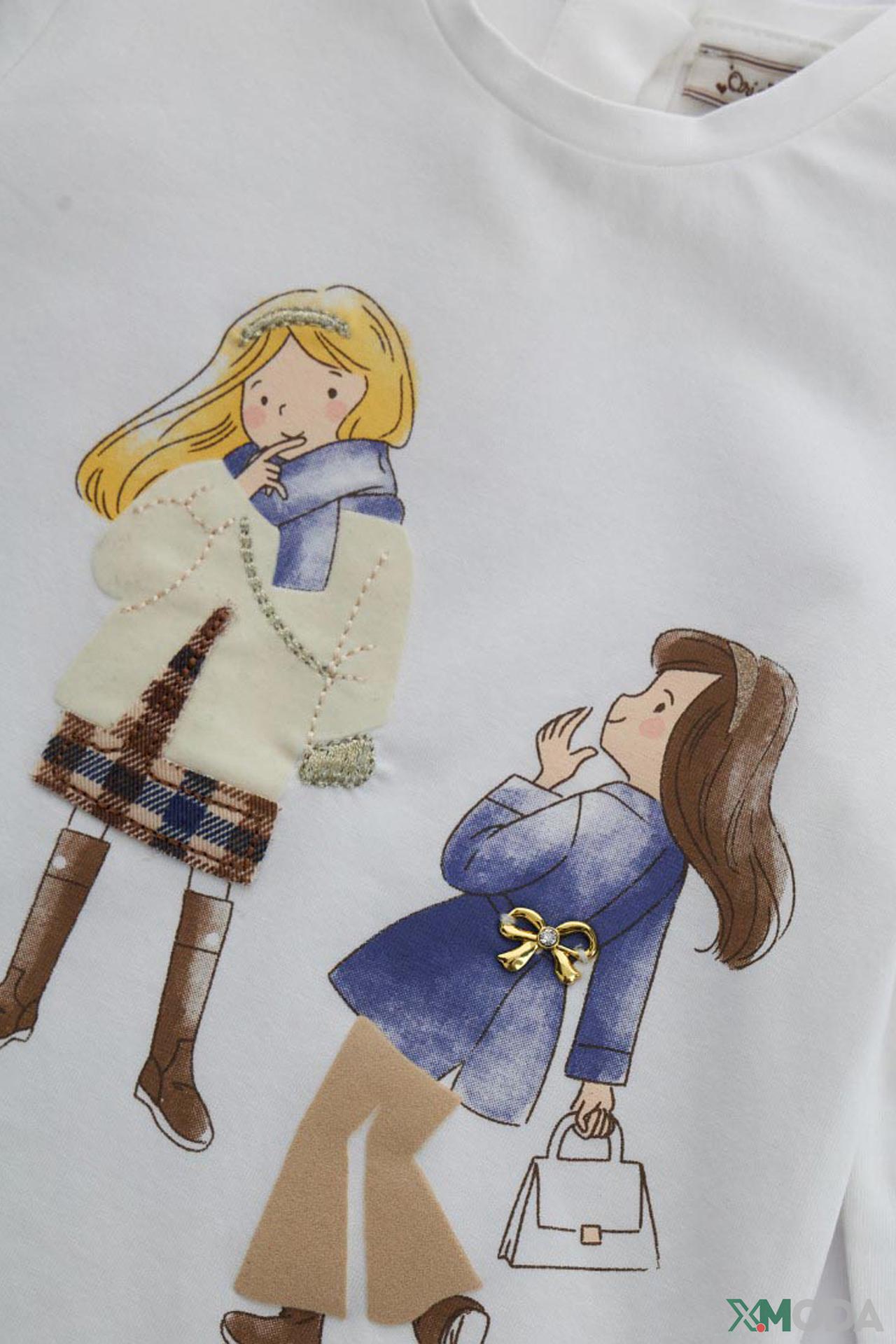 Детская футболка Original Marines с длинным рукавом создана для комфорта и стиля вашей малышки. Модель выполнена из высококачественного трикотажа (92% хлопок, 8% эластан), что обеспечивает мягкость, эластичность и долговечность изделия. Белая футболка украшена объемной аппликацией с изображением двух девочек, дополненной стильным принтом и элегантным золотистым бантом со стразами, который придает изделию особое очарование. Это идеальная детская одежда для повседневной носки, прогулок и детского сада.