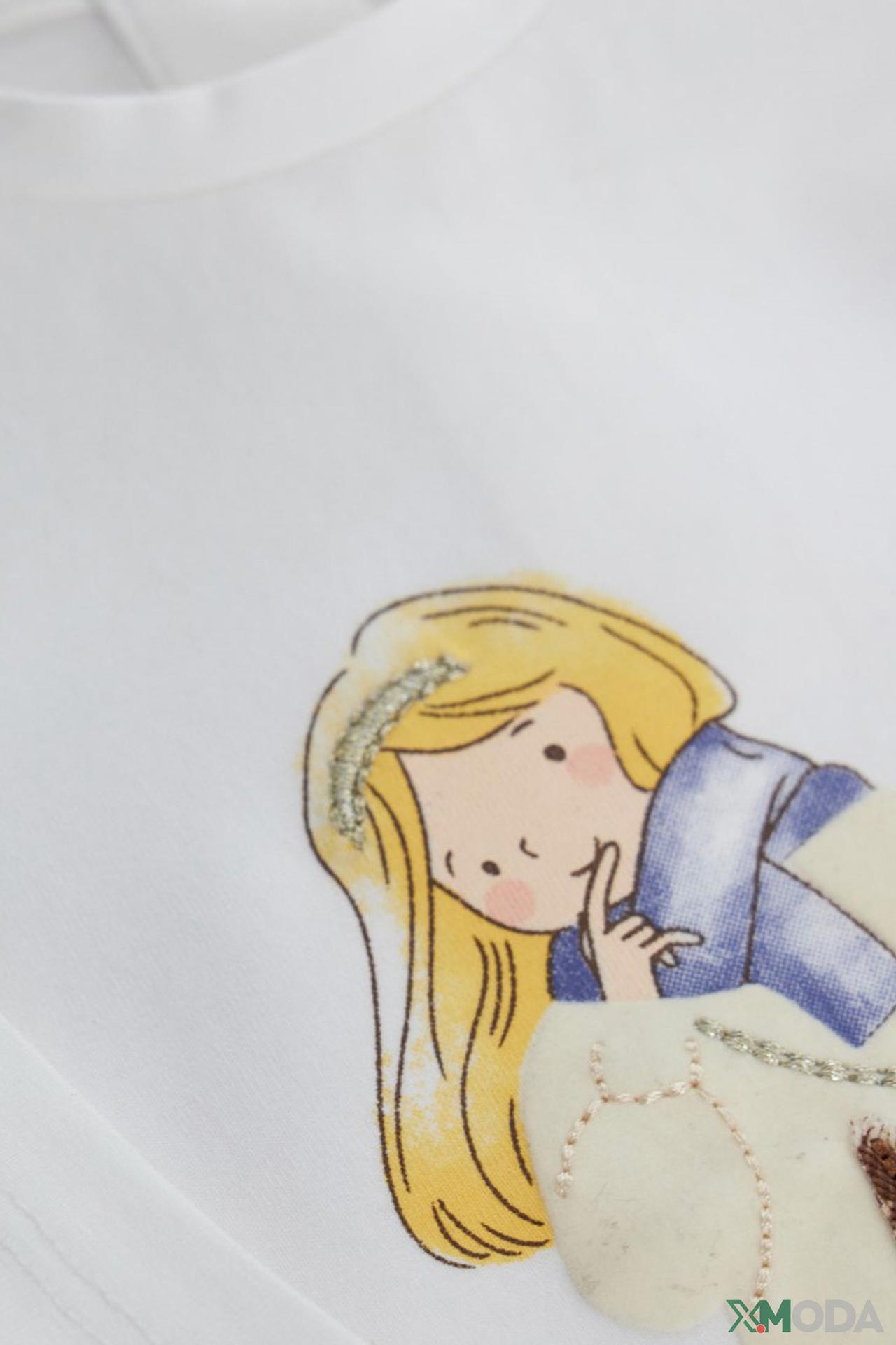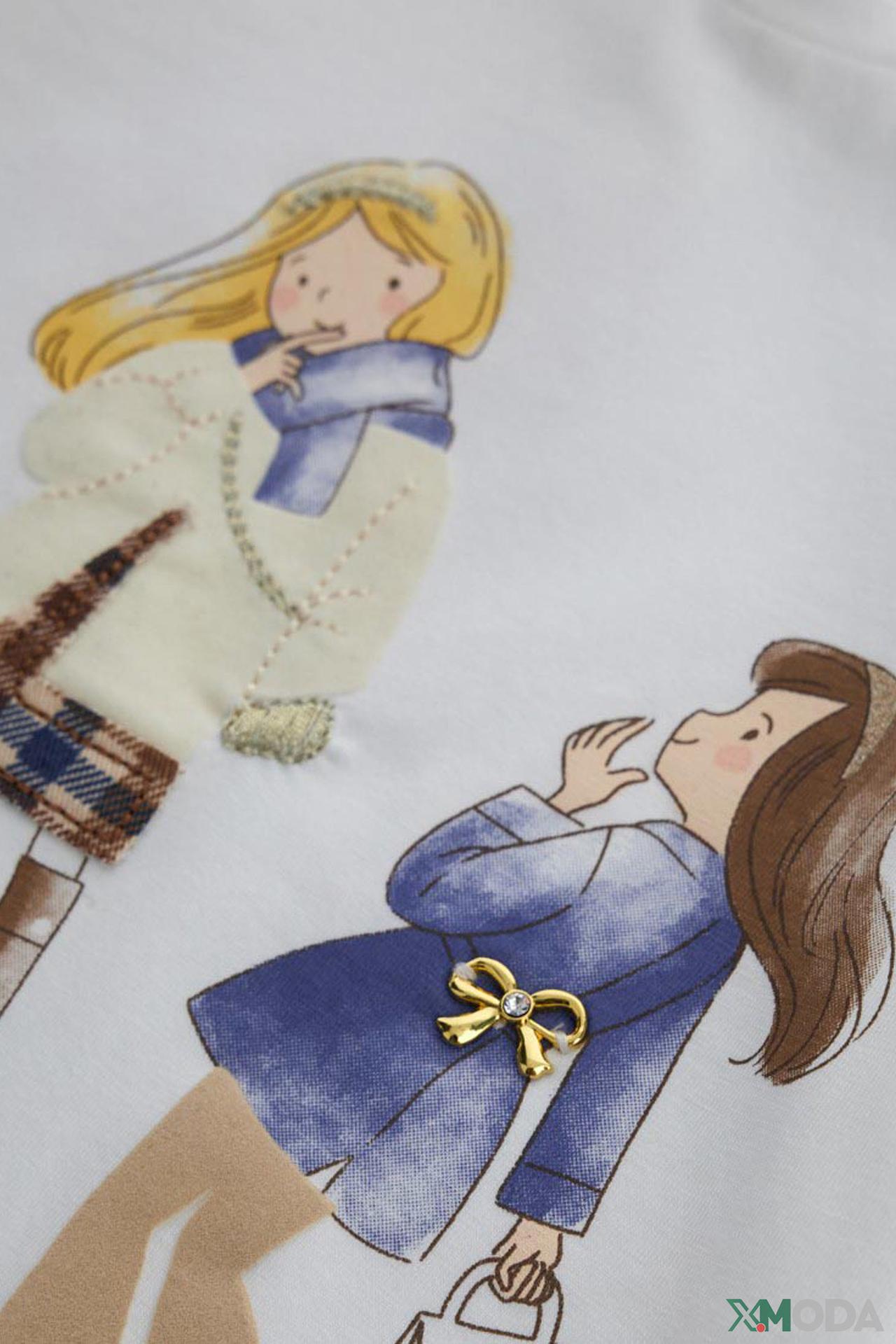 - Оригинальный дизайн: Красочный принт с персонажами и уникальная объемная аппликация делают эту футболку заметной и привлекательной для маленьких модниц.