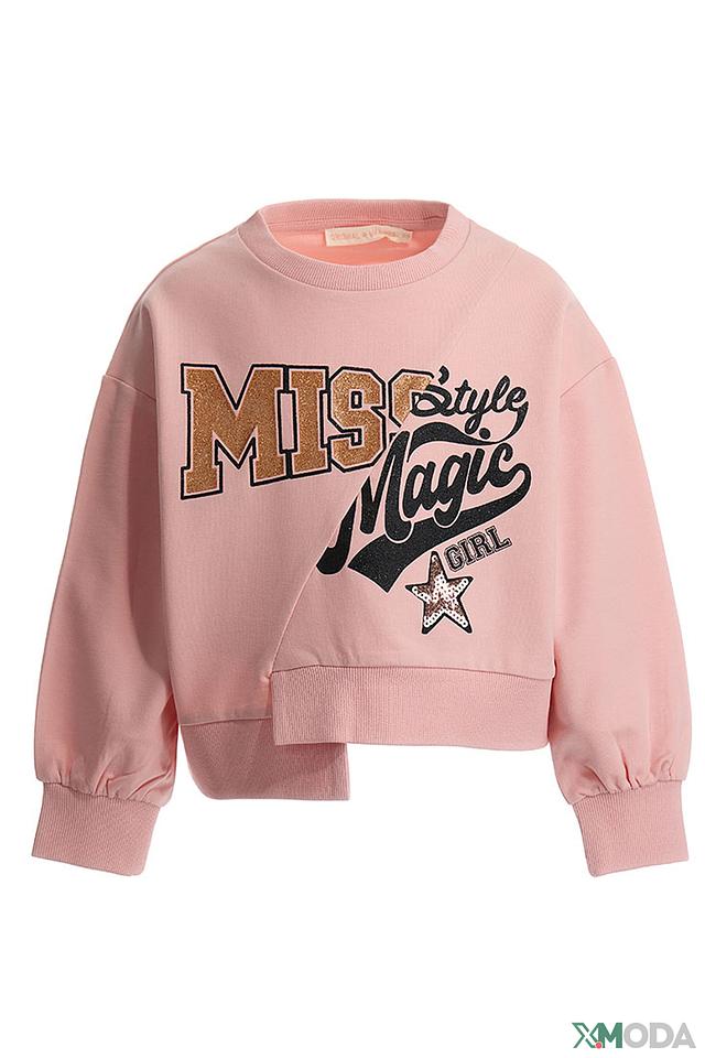 Стильный и удобный свитшот от Original Marines станет отличным дополнением к гардеробу юной модницы. Модель выполнена в нежном розовом цвете и украшена эффектным принтом с надписями и блестящей звездой.