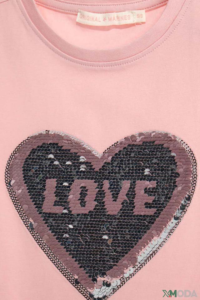 Розовая футболка Original Marines для девочки, украшенная мерцающим сердцем. Изготовлена из мягкого хлопка с добавлением эластана для комфорта и свободы движений. Состав: хлопок 92%, эластан 8%