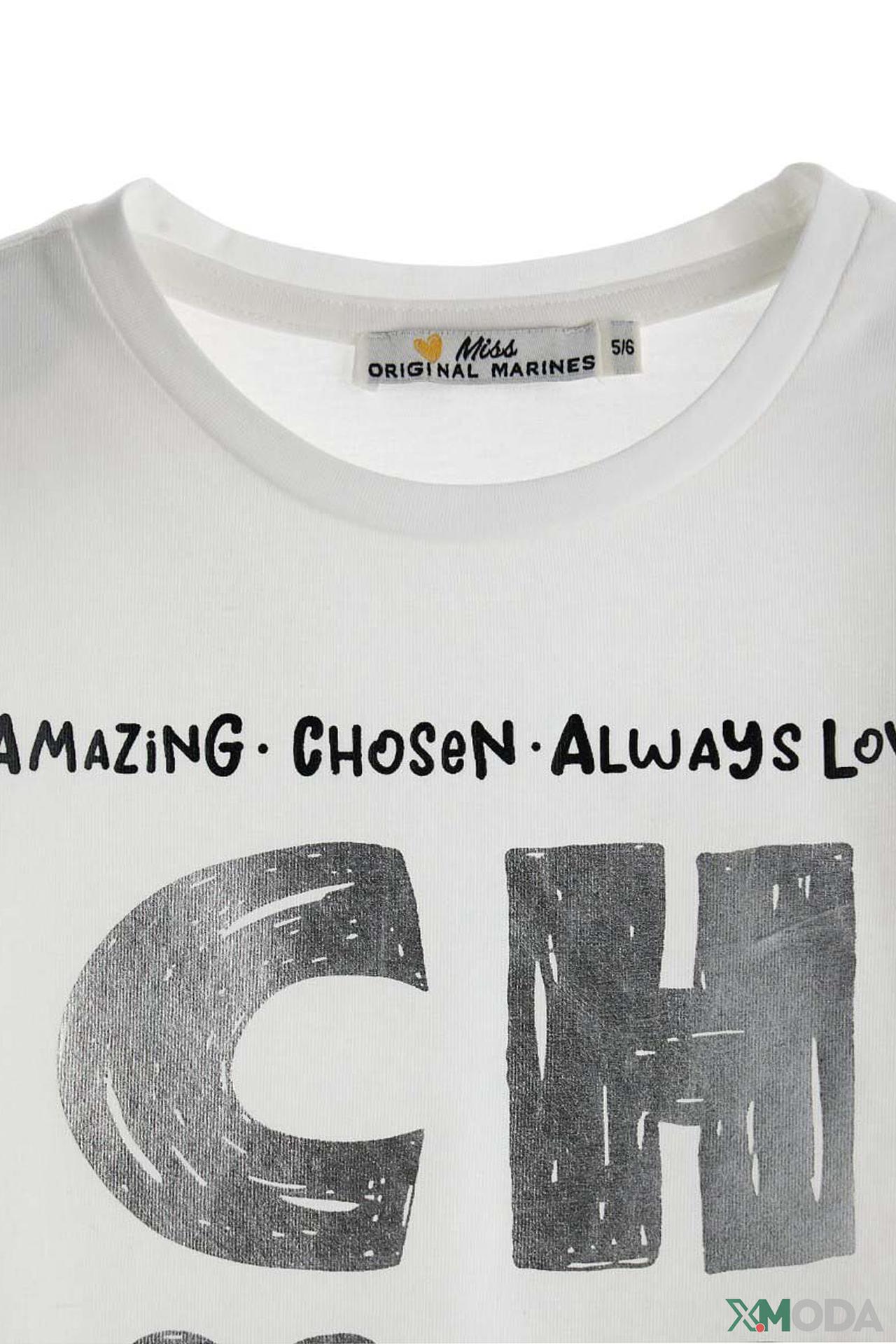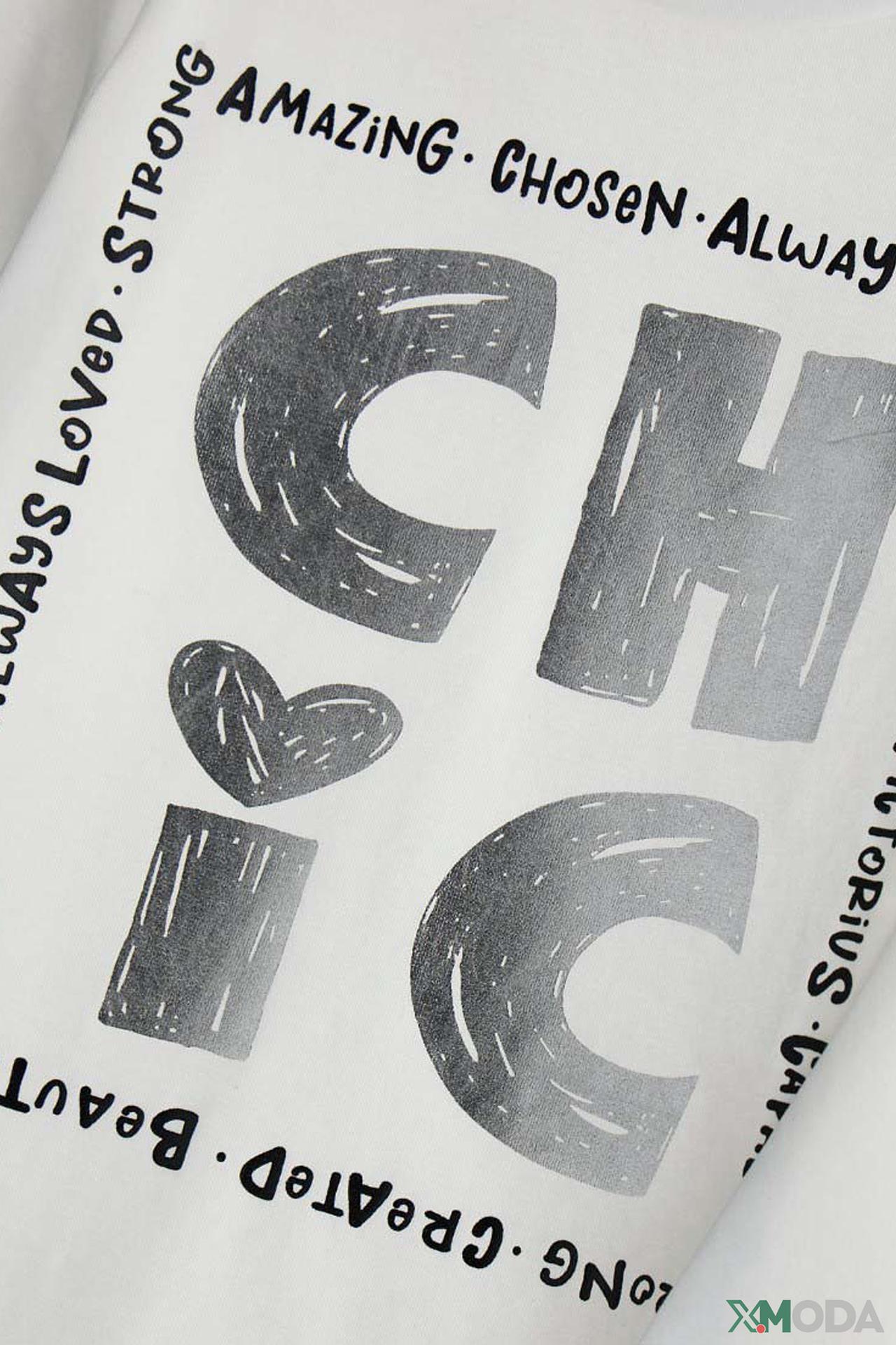 - Стильный принт: Эффектный принт "CHIC" с металлизированными деталями и мотивирующими фразами делает эту футболку ярким акцентом в детском гардеробе, подчеркивая индивидуальность.