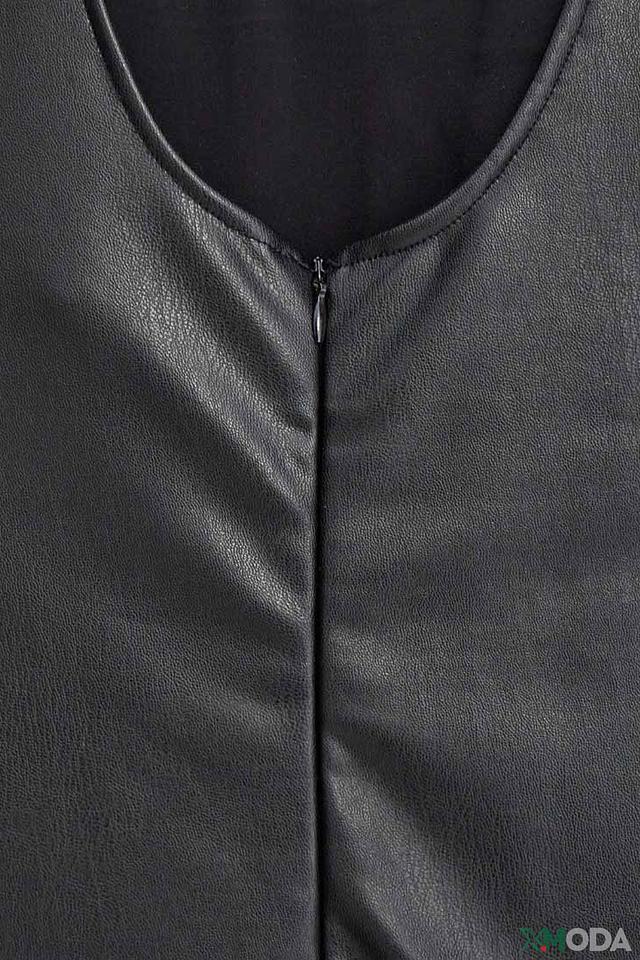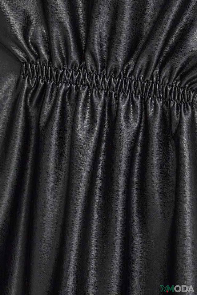 Чёрное платье от Original Marines выполнено из гладкой экокожи и имеет удобную сборку по талии. Модель с круглым вырезом и молнией, идеально подходит для создания стильного образа. Состав: Состав_подкладка вискоза 100%, полиэстер 91%, эластан 9%