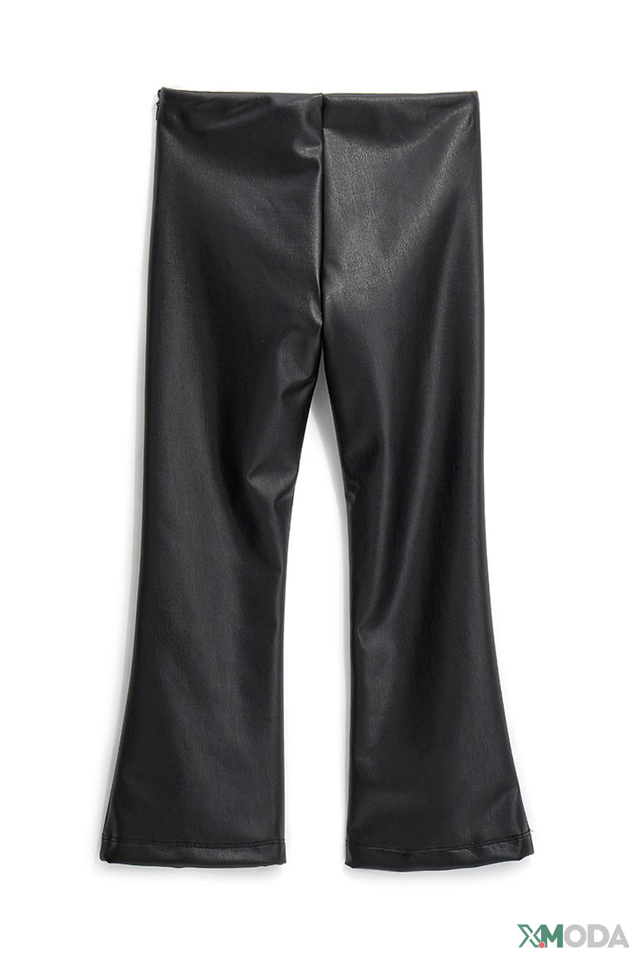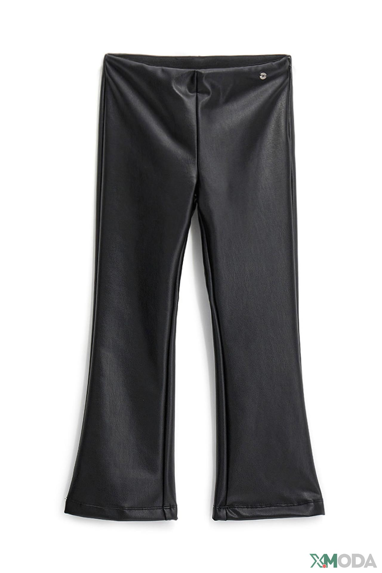 - Материал: Изделие выполнено из полиэстера (91%) с добавлением эластана (9%), что обеспечивает приятные тактильные ощущения, износостойкость и легкую тягучесть. Материал имитирует натуральную кожу, придавая брюкам модный вид.