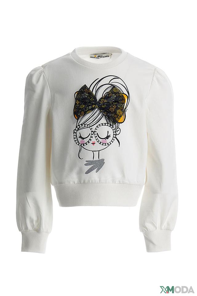 Белый свитшот Original Marines для девочки с ярким принтом в виде девушки в очках. Модель выполнена из мягкого хлопка с добавлением эластана для комфорта и свободы движений. Состав: хлопок 96%, эластан 4%